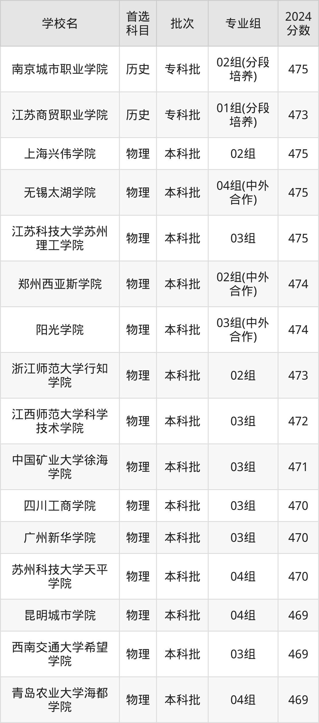 3、苏州科技大学天平学院(2024年物理类04组470分)
