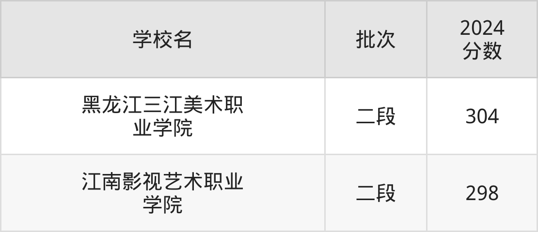 2、黑龙江三江美术职业学院(2024年304分)
