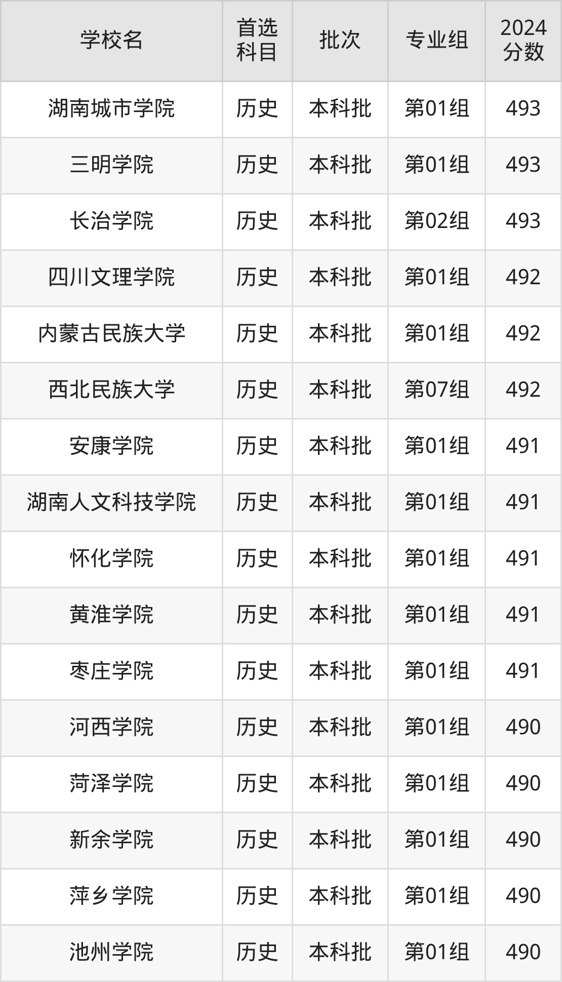 1、河西学院(2024年历史类第01组490分)