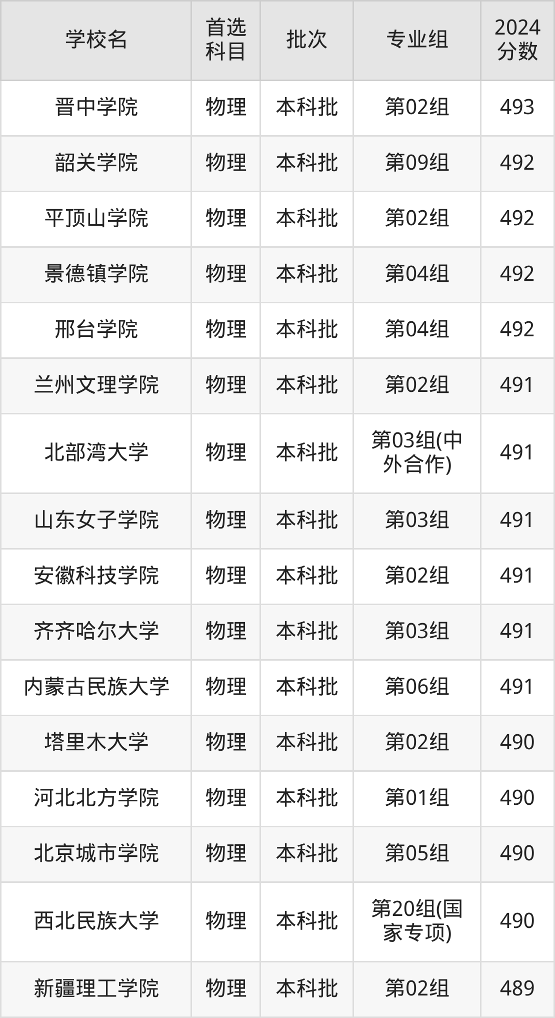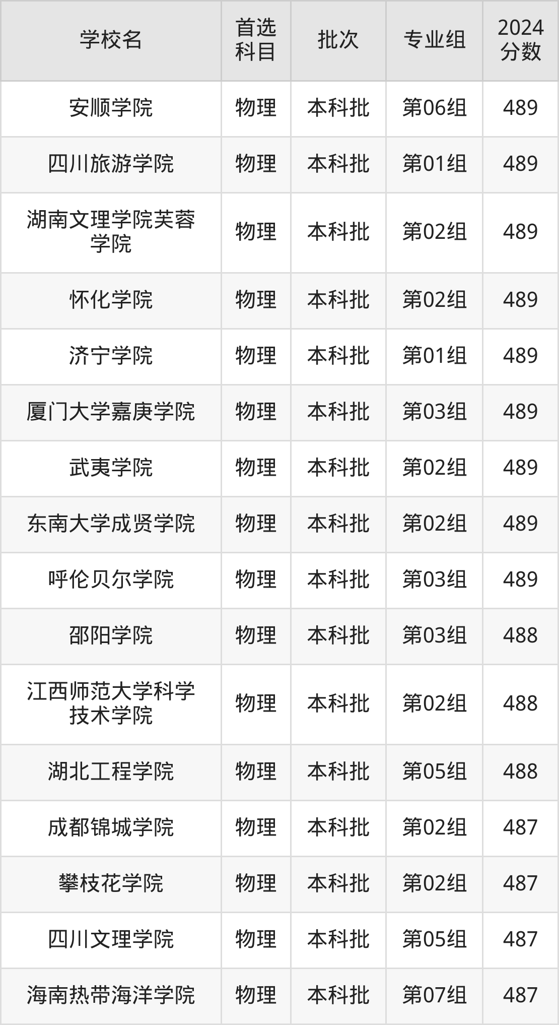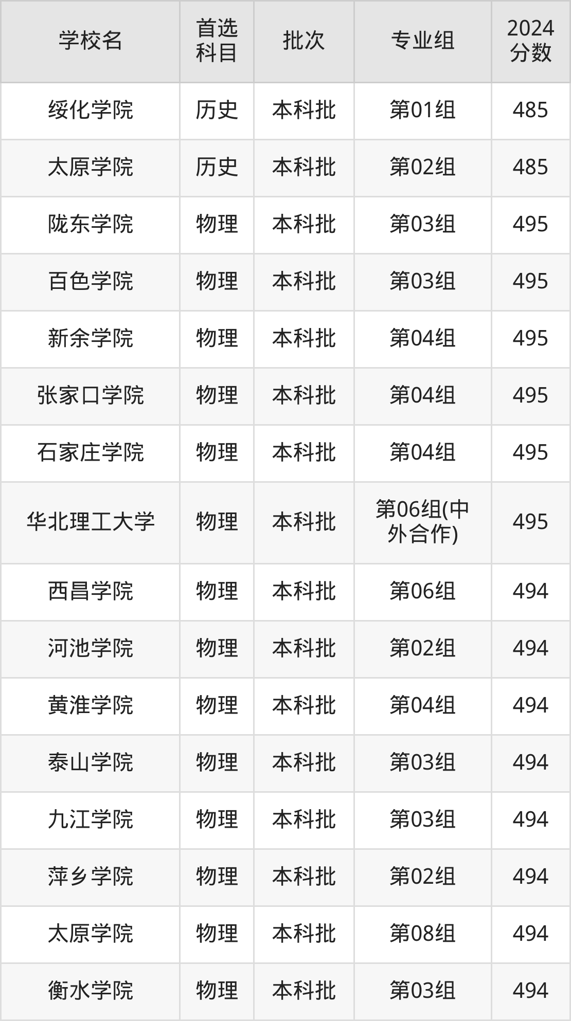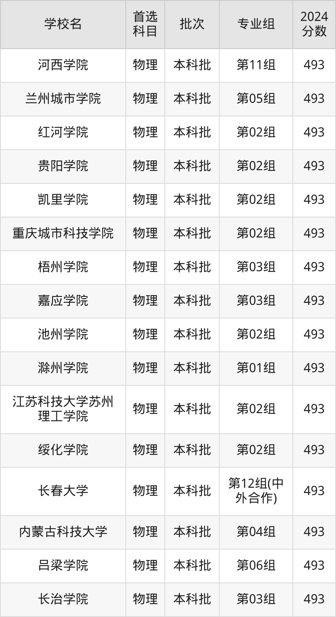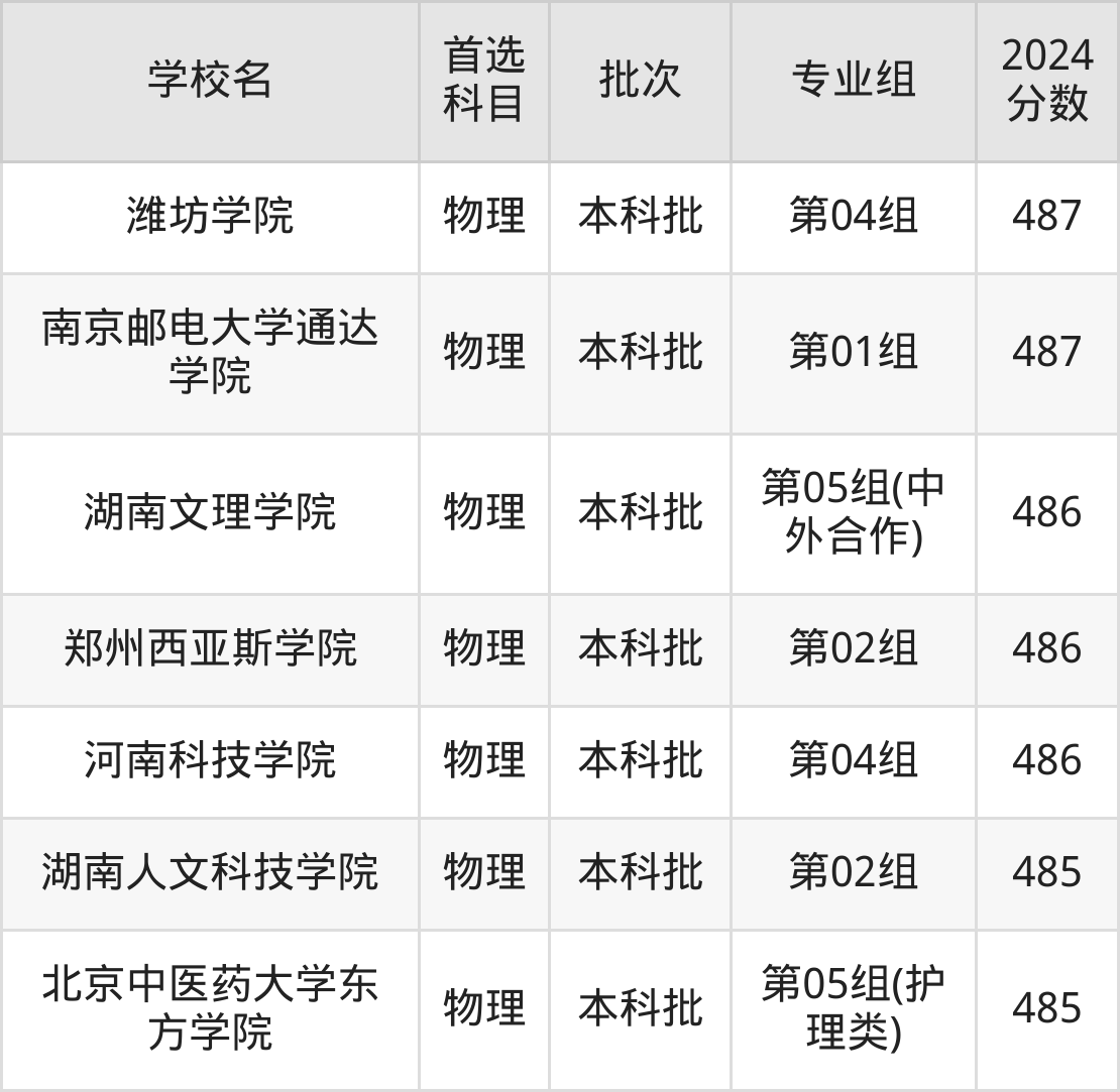 首选物理科目考生能上的有69所,全部在本科批次录取。具体有:陇东学院第03组(495分)、百色学院第03组(495分)、新余学院第04组(495分)、张家口学院第04组(495分)等。