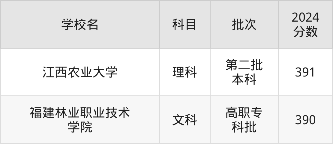理科科目考生能上的有1所,全部在本科批次录取。具体有:江西农业大学(391分);