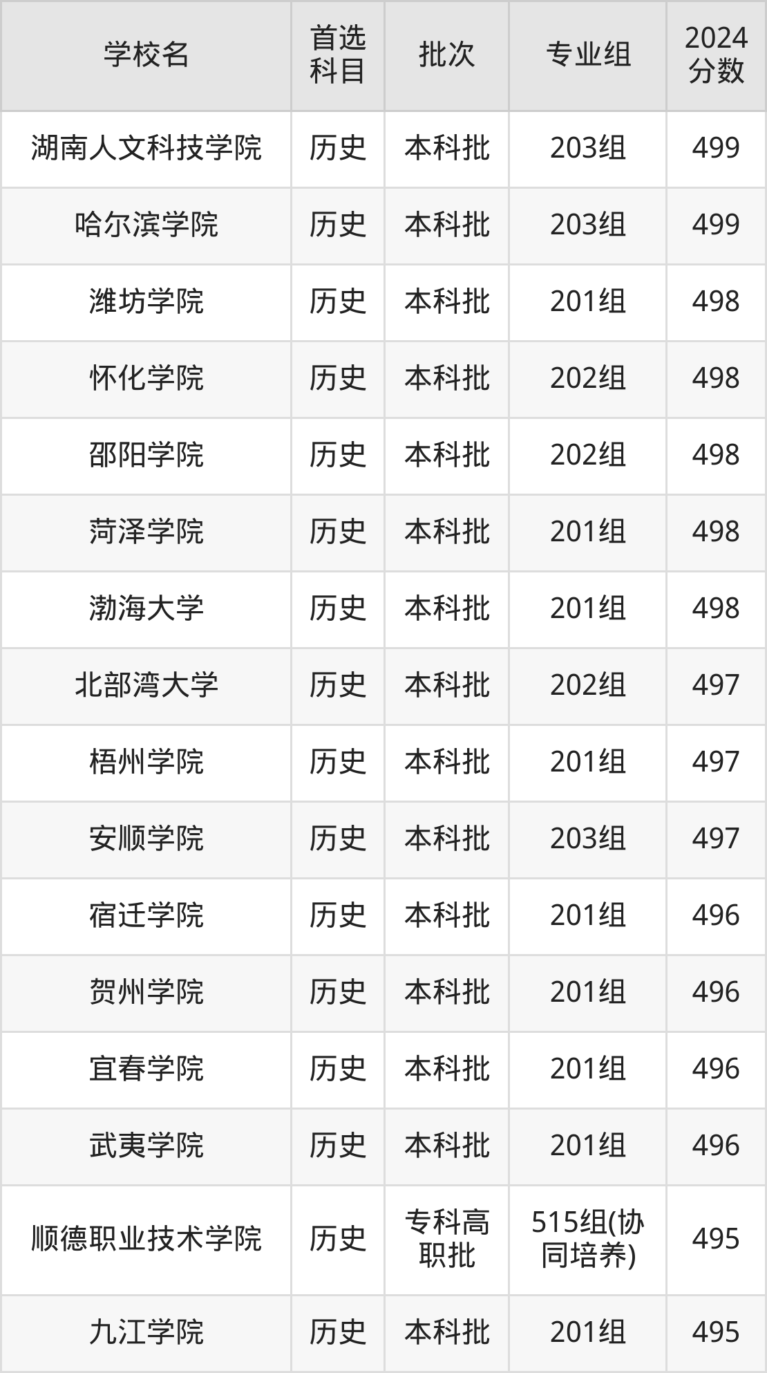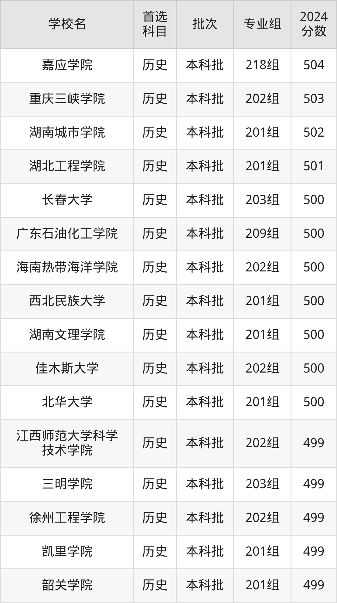 首选历史科目考生能上的有43所,包括42所本科医科大学和1所专科医科大学。具体有:新余学院202组(505分)、大理大学201组(505分)、惠州学院207组(505分)、黑龙江大学201组(505分)等。
