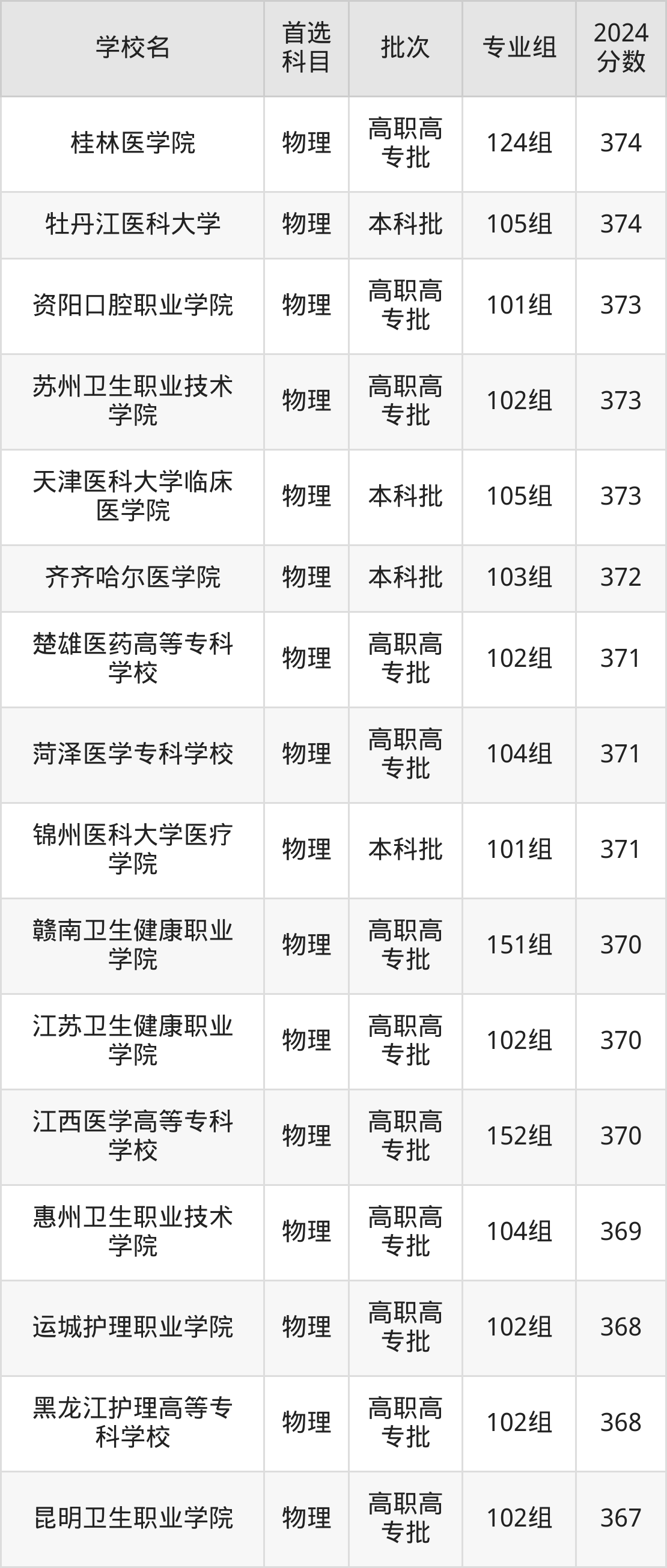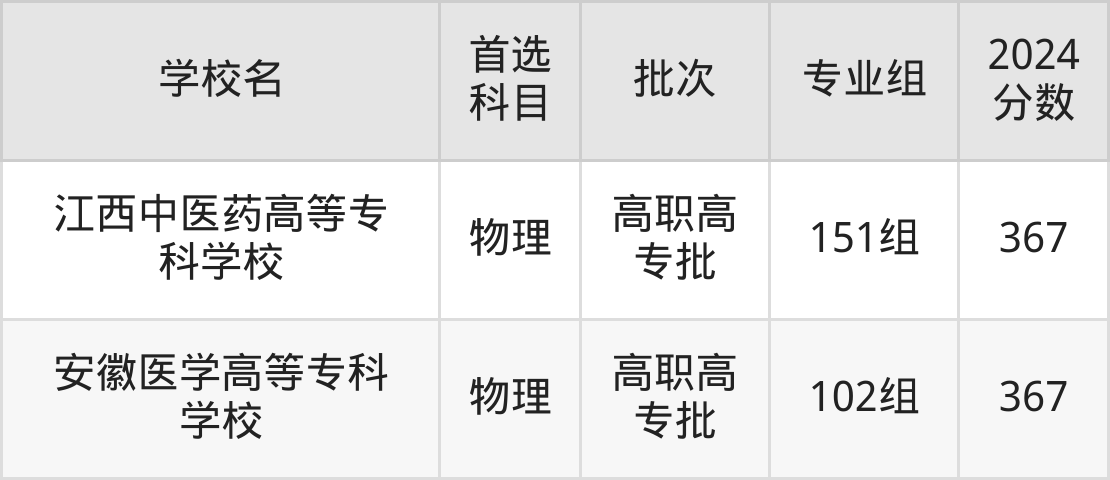 3、江西医学高等专科学校(2024年物理类152组370分)