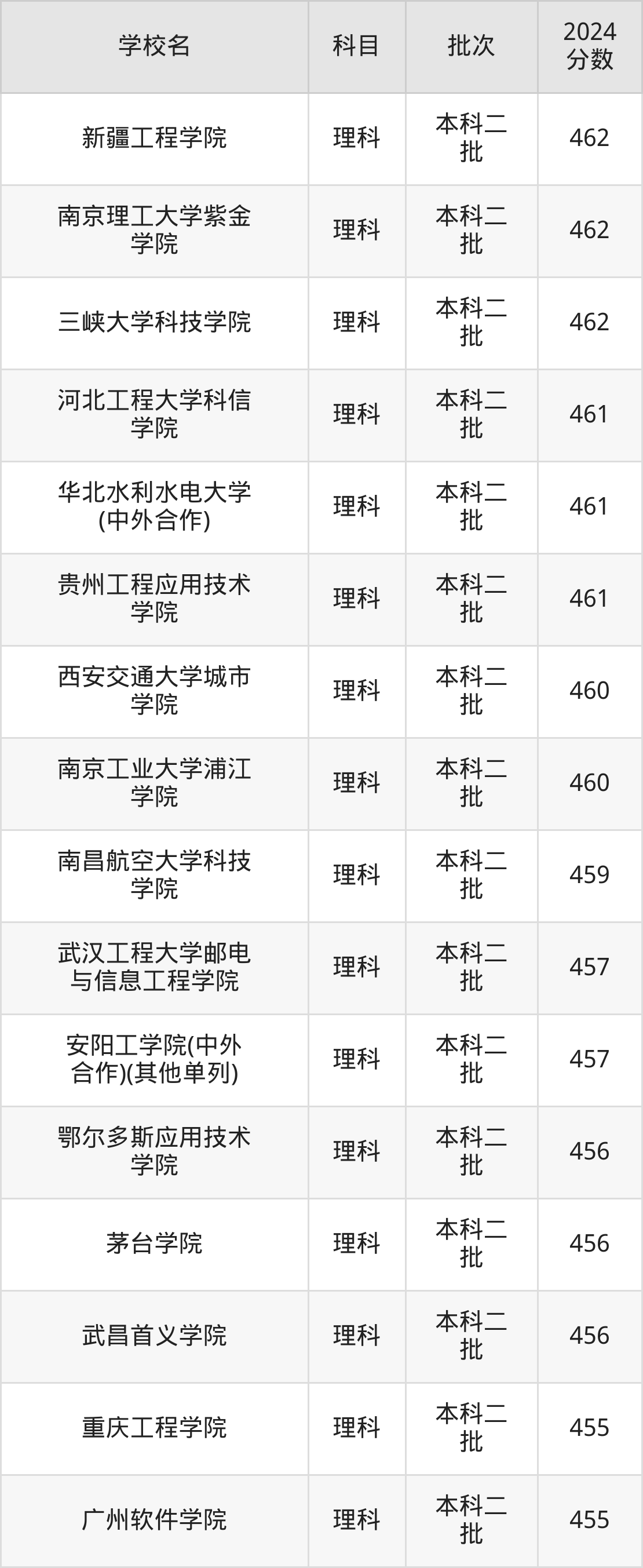 1、西安交通大学城市学院(2024年理科460分)