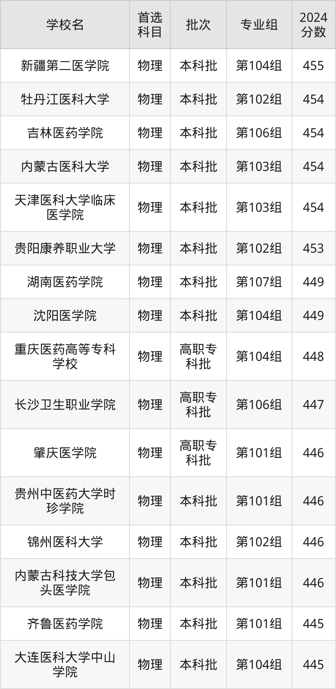 1、沈阳医学院(2024年物理类第104组449分)