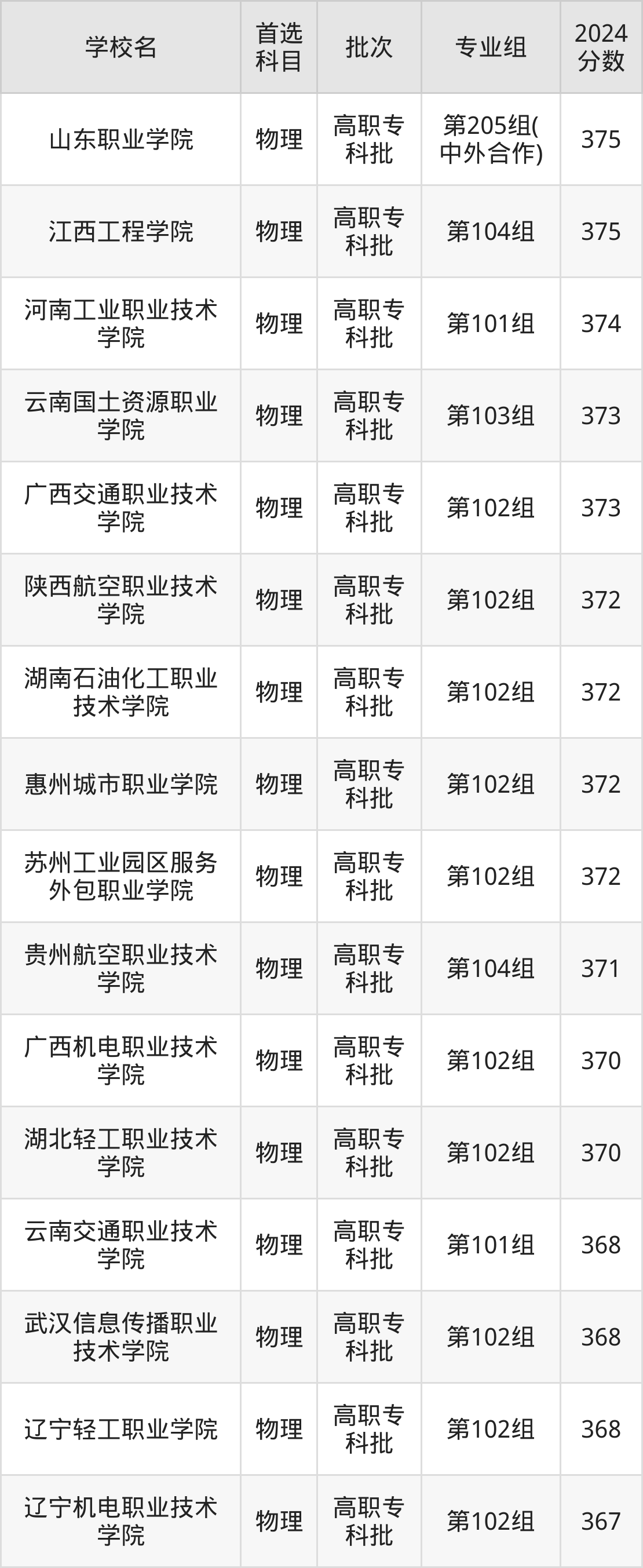 2、湖北轻工职业技术学院(2024年物理类第102组370分)