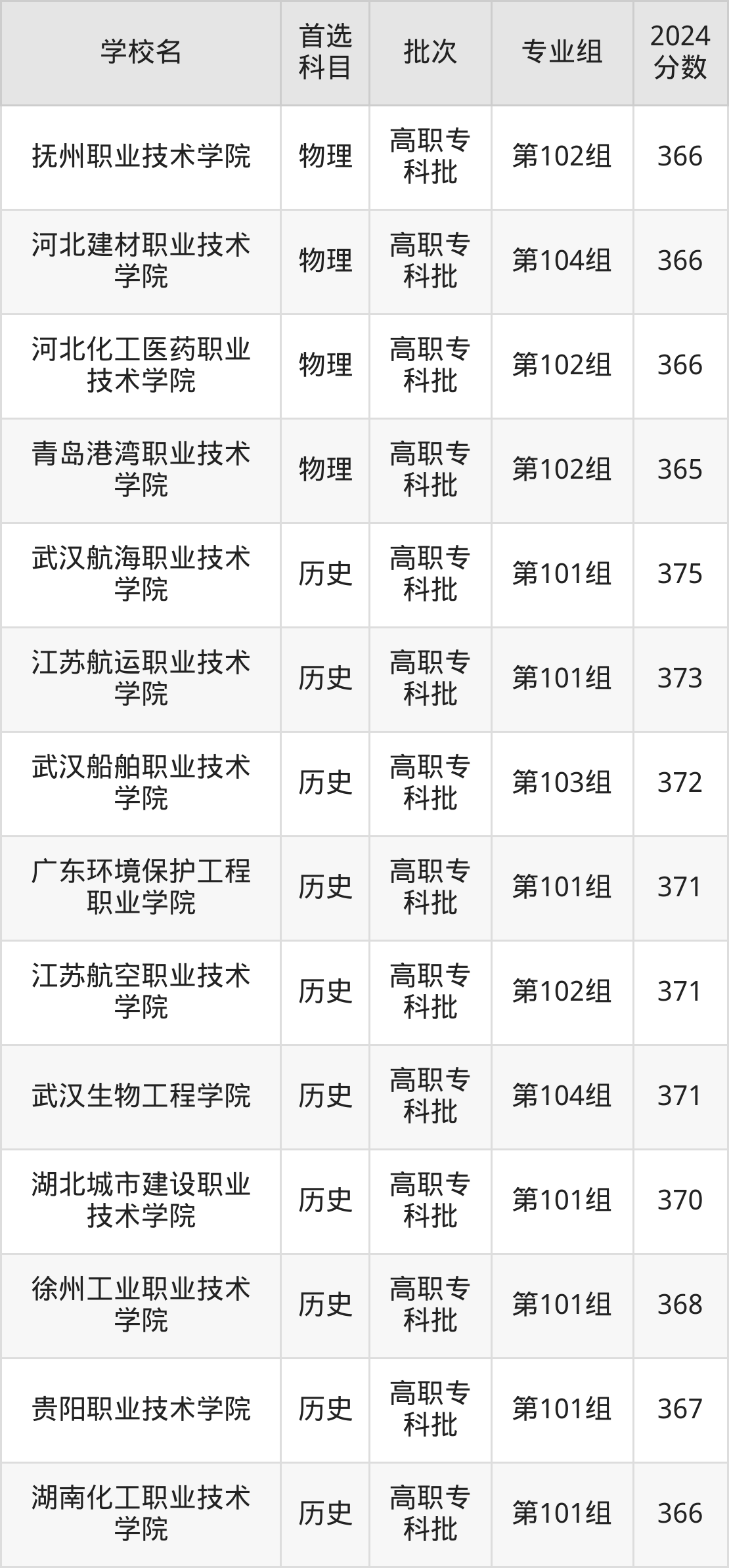 3、湖北城市建设职业技术学院(2024年历史类第101组370分)