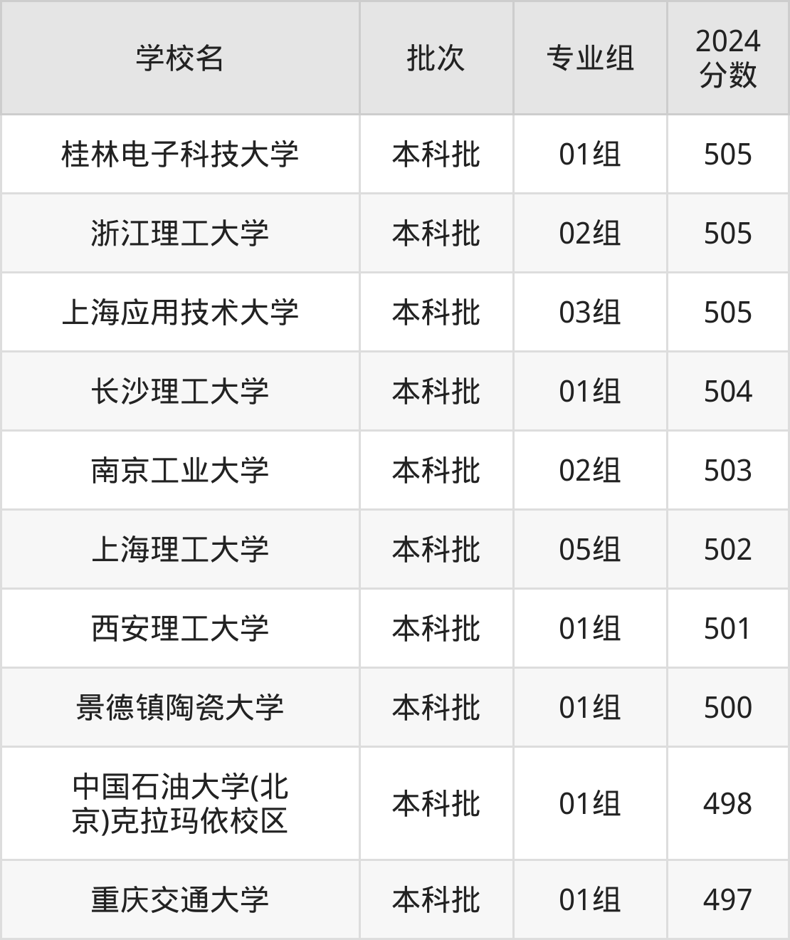 为给各位考生更加详细的参考,下文整理了2024年录取分数线在495分到505分之间的理工类大学名单汇总。