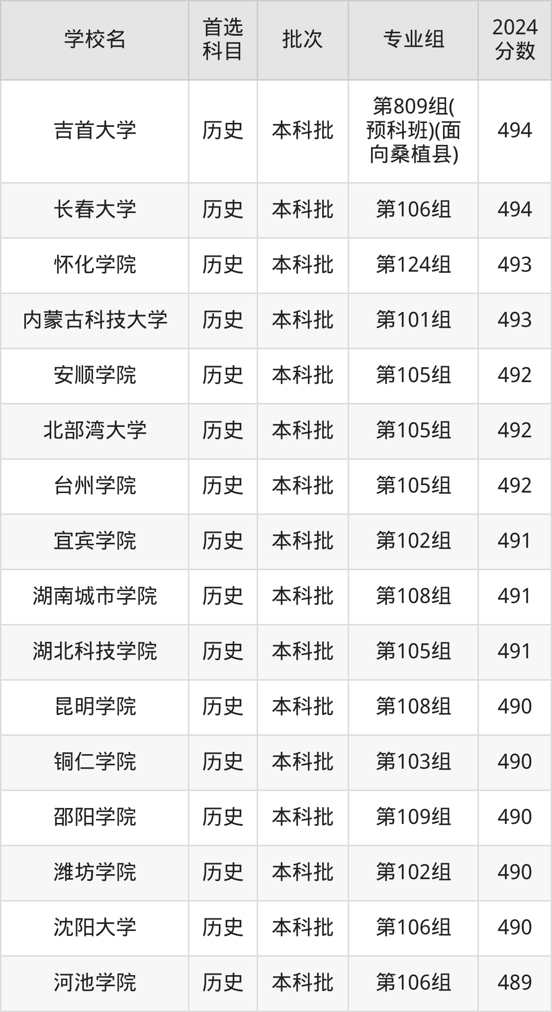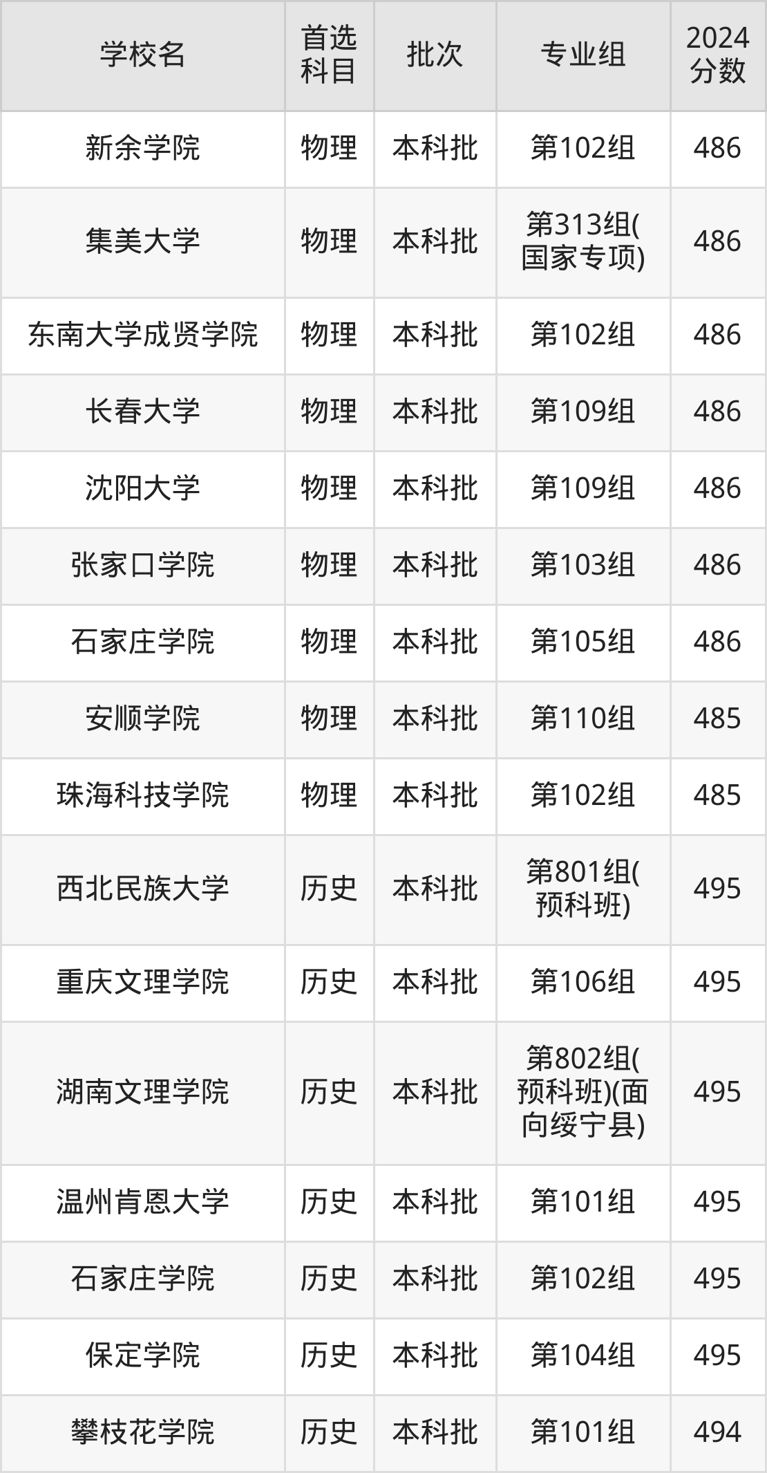 首选历史科目考生能上的有37所,全部在本科批次录取。具体有:西北民族大学第801组(预科班)(495分)、重庆文理学院第106组(495分)、湖南文理学院第802组(预科班)(面向绥宁县)(495分)、温州肯恩大学第101组(495分)等。