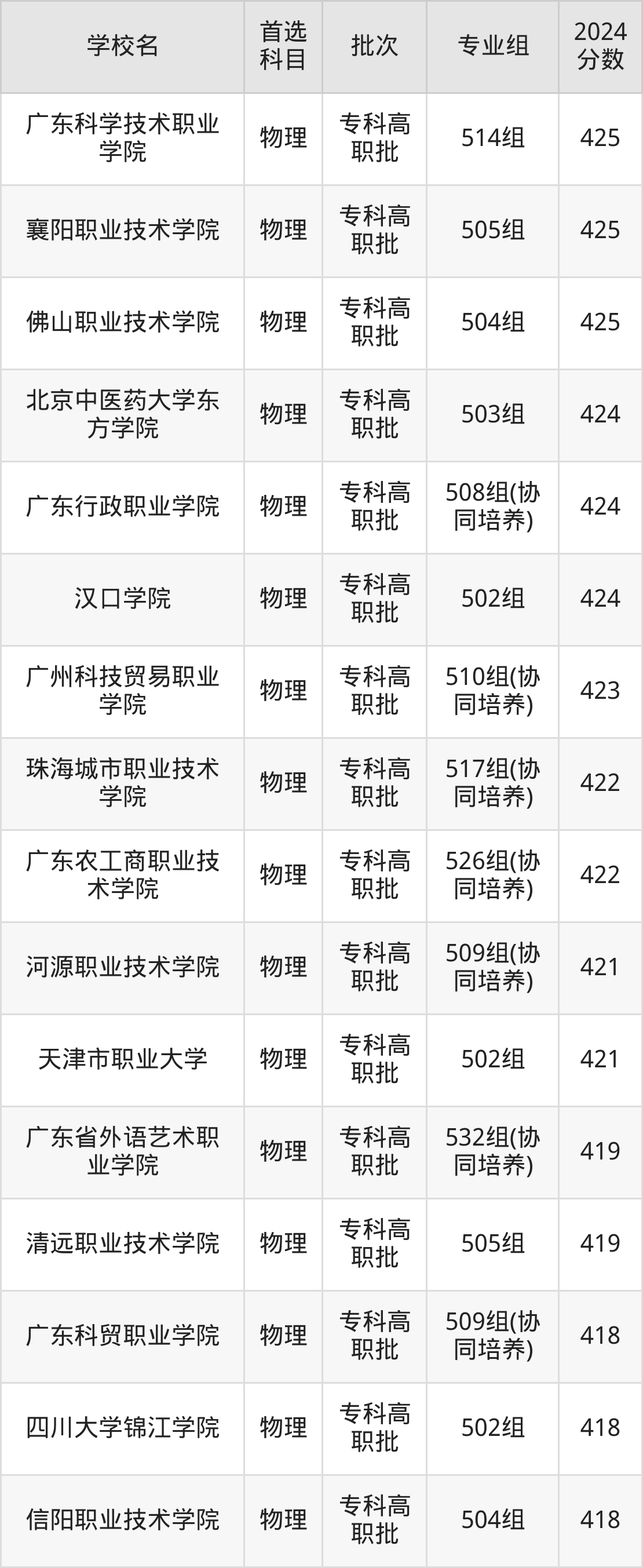襄阳职业技术学院(2024年物理类508组420分)