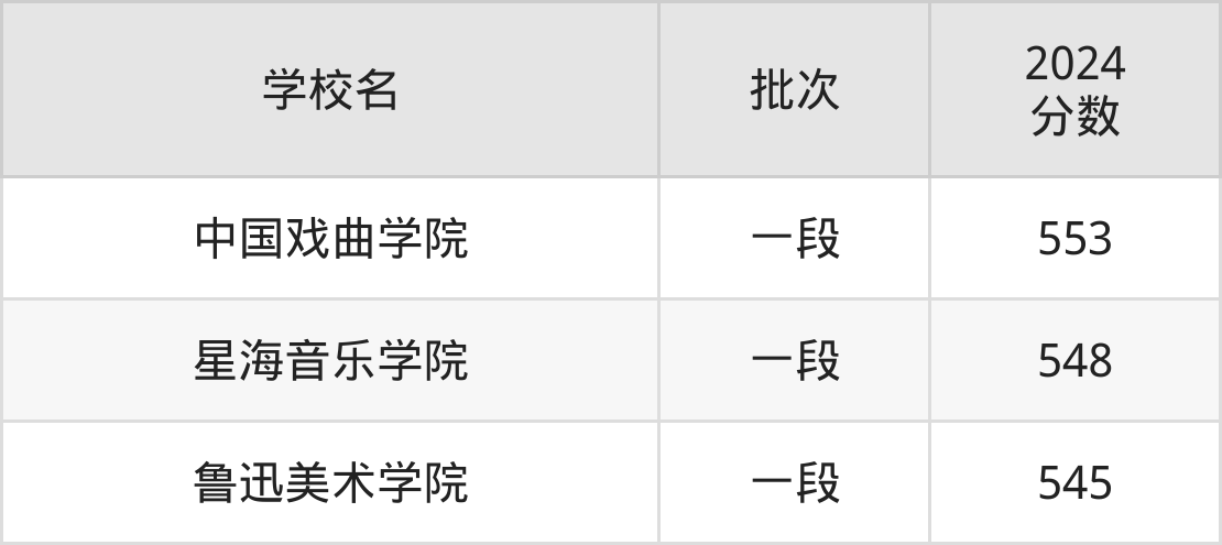 为给各位考生更加详细的参考,下文整理了2024年录取分数线在545分到555分之间的艺术类大学名单汇总。