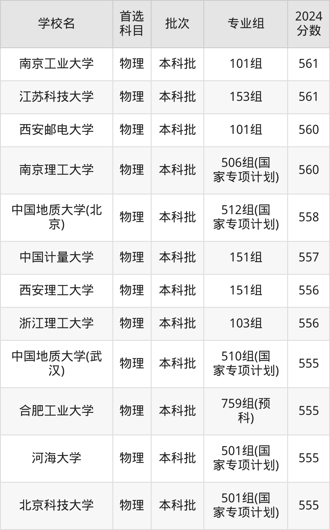 3、南京理工大学(2024年物理类506组(国家专项计划)560分)