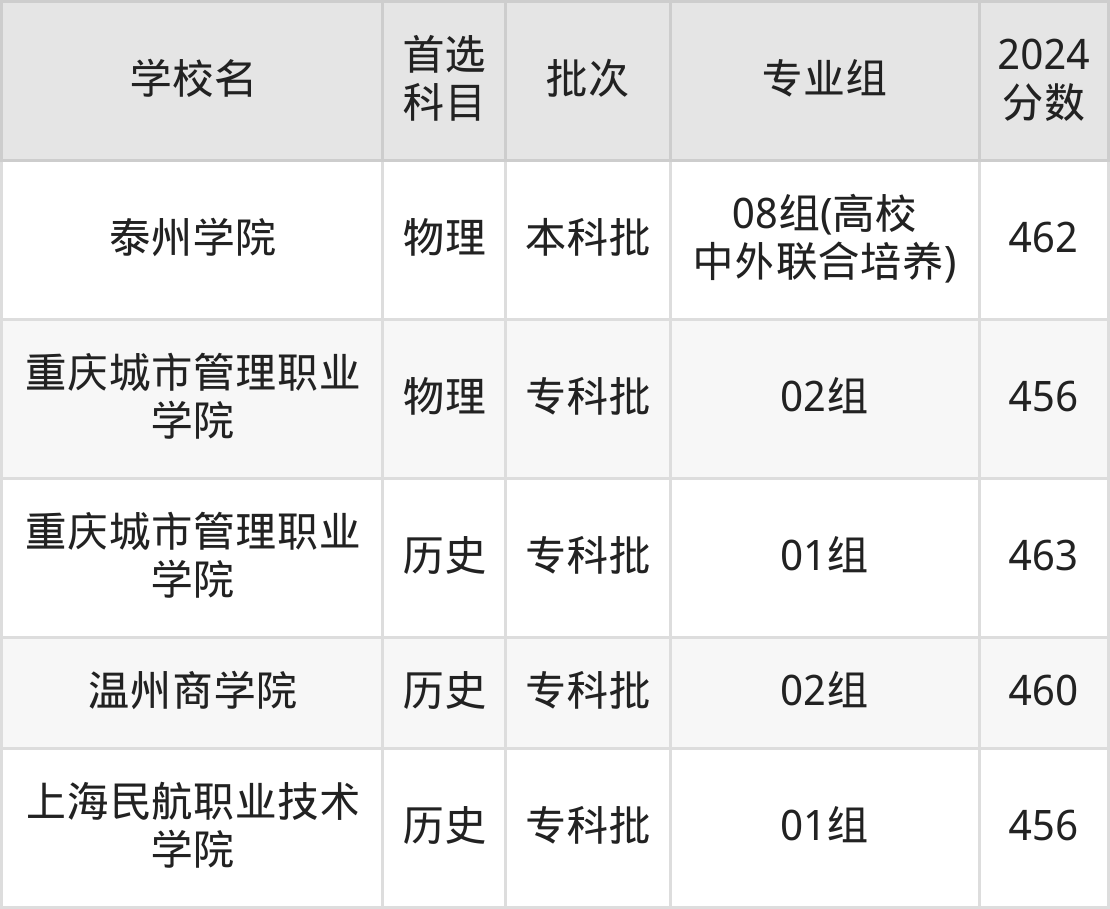 首选历史科目考生能上的有3所,包括1所本科医科大学和2所专科医科大学。具体有:重庆城市管理职业学院01组(463分)、温州商学院02组(460分)、上海民航职业技术学院01组(456分)。