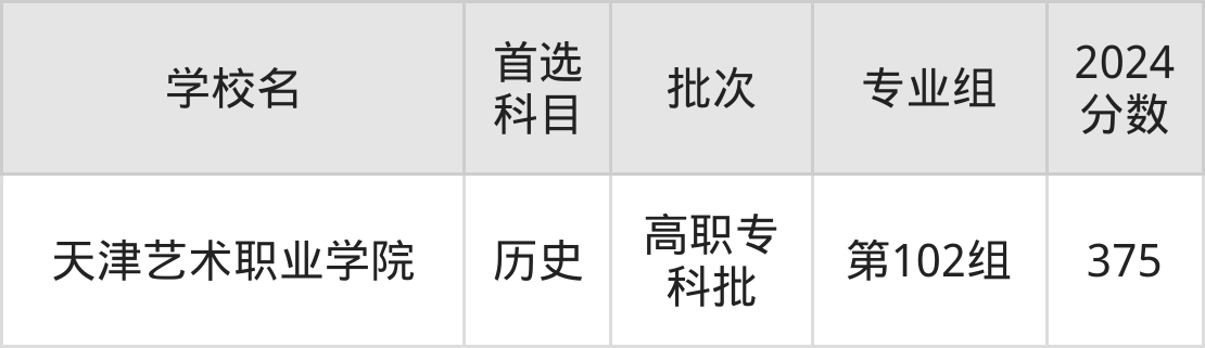 1、天津艺术职业学院(2024年历史类第102组375分)