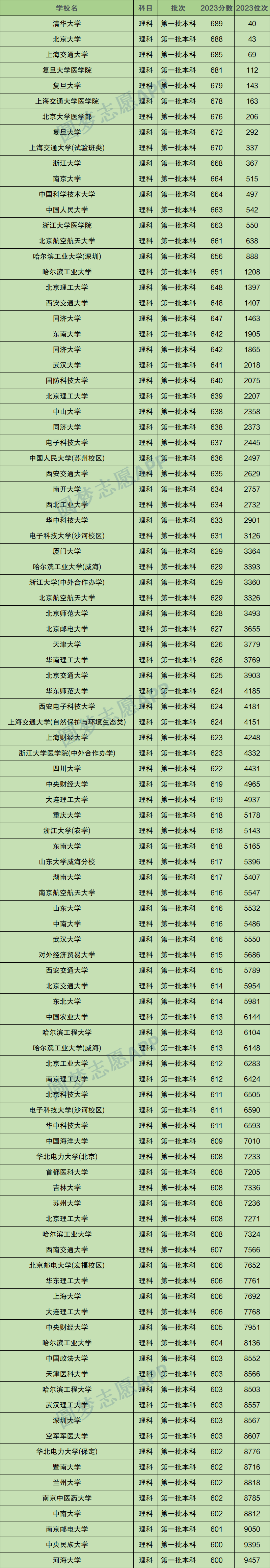 在全国本科大学中,理科考生里分数最高、最难考的是清华大学,最低录取分数是689分,所在的位次是40