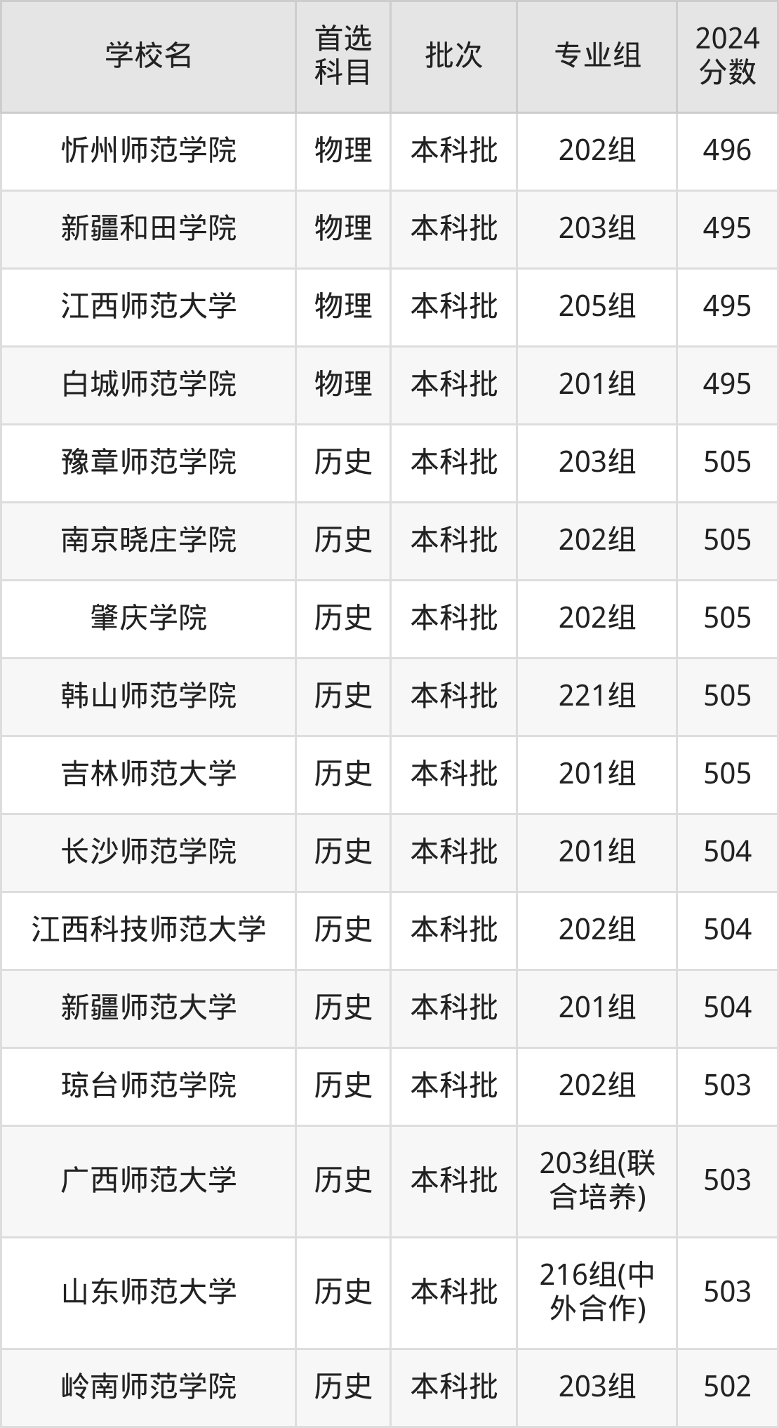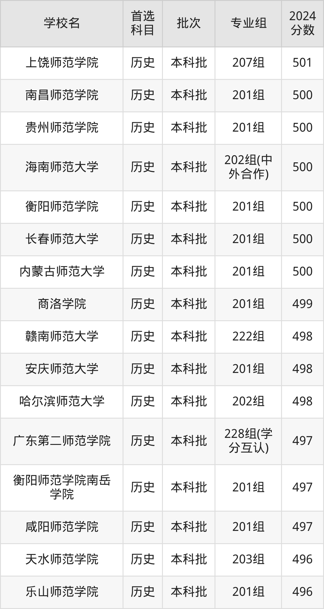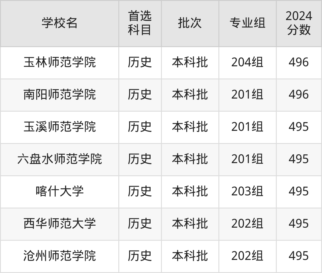 为给各位考生更加详细的参考,下文整理了2024年录取分数线在495分到505分之间的师范类大学名单汇总。