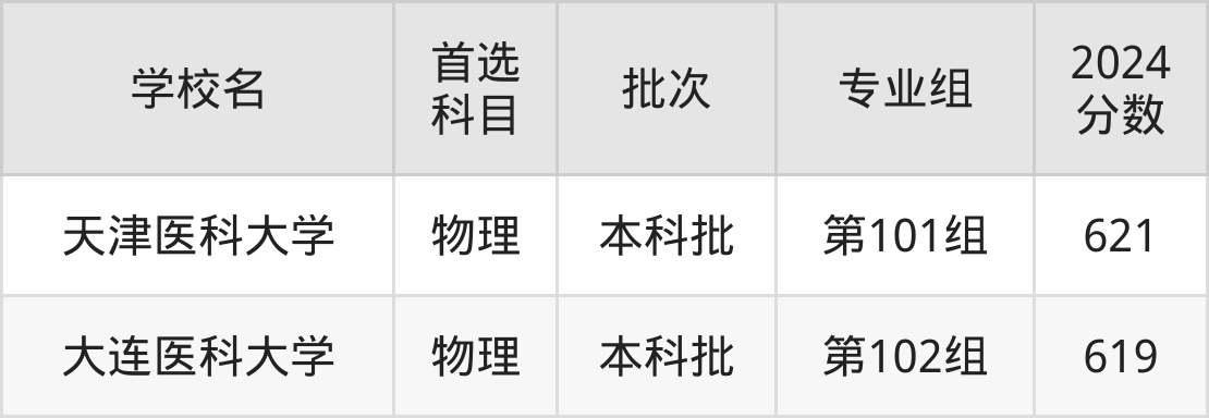 1、天津医科大学(2024年物理类第101组621分)