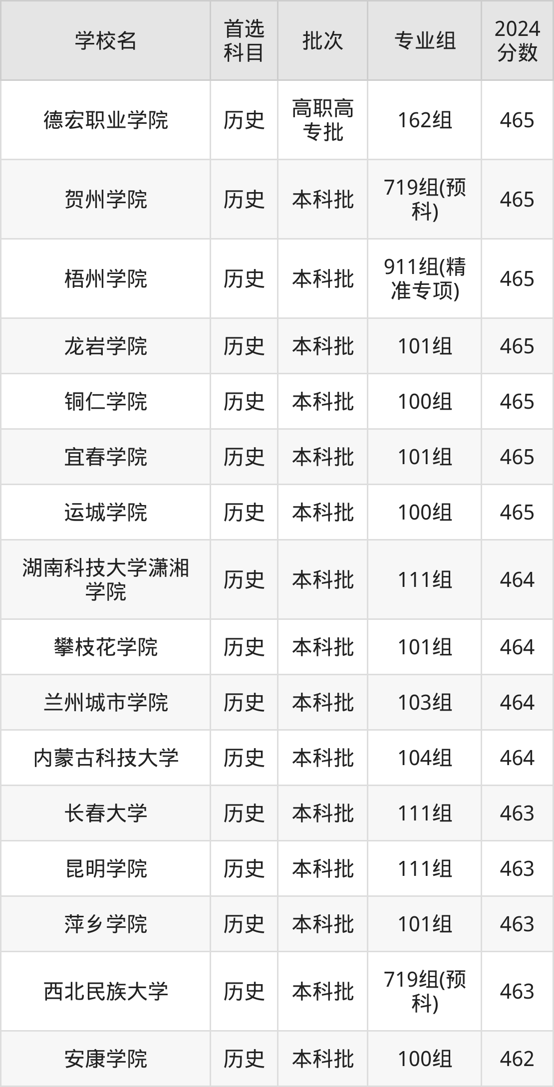首选历史科目考生能上的有37所,包括36所本科医科大学和1所专科医科大学。具体有:德宏职业学院162组(465分)、贺州学院719组(预科)(465分)、梧州学院911组(精准专项)(465分)、龙岩学院101组(465分)等;