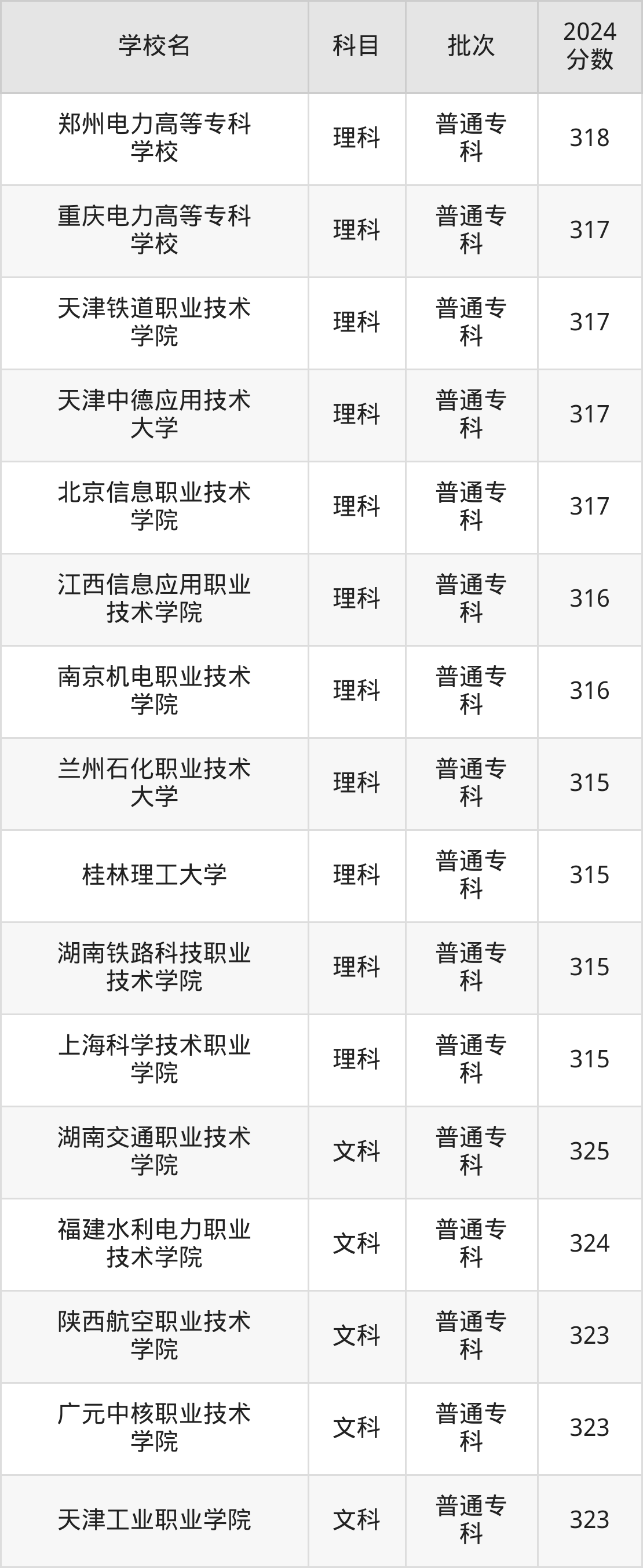 1、重庆水利电力职业技术学院(2024年理科320分)