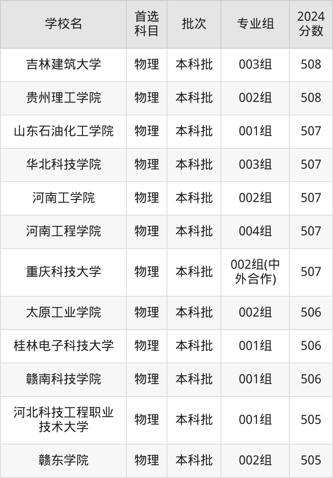 为给各位考生更加详细的参考,下文整理了2024年录取分数线在505分到515分之间的理工类大学名单汇总。