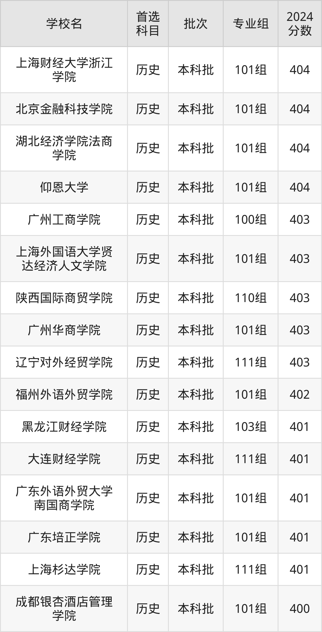 2、天津商业大学宝德学院(2024年历史类101组400分)