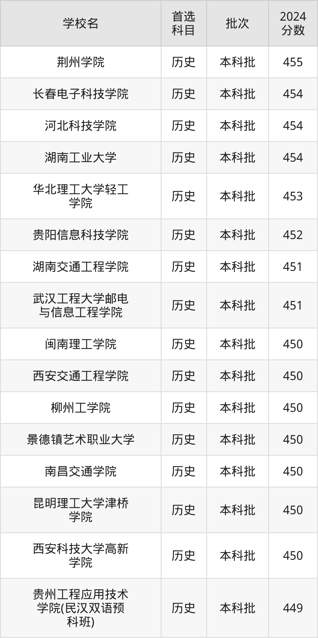 首选历史科目考生能上的有42所,包括40所本科医科大学和2所专科医科大学。具体有:荆州学院(455分)、长春电子科技学院(454分)、河北科技学院(454分)、湖南工业大学(454分)等;