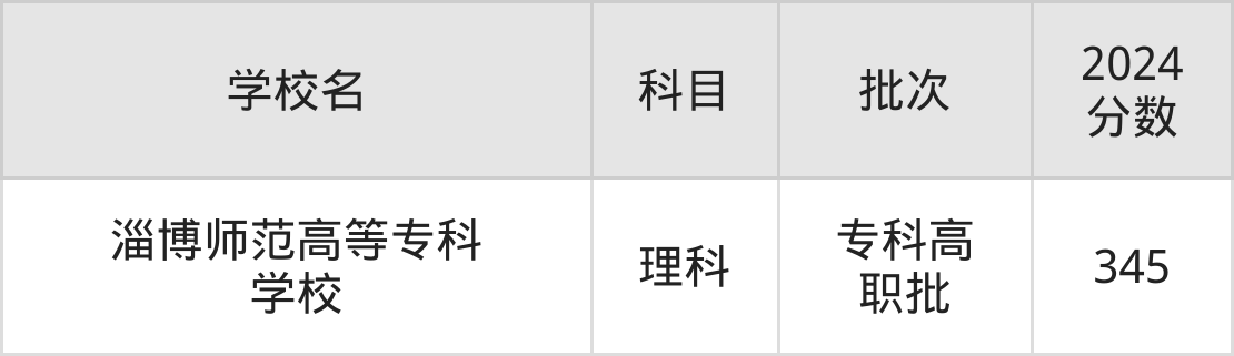 1、淄博师范高等专科学校(2024年理科345分)