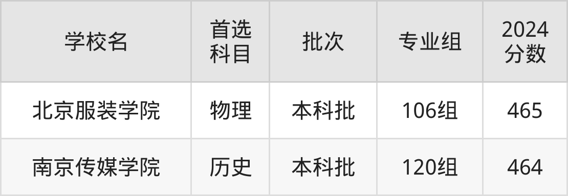 首选历史科目考生能上的有1所,全部在本科批次录取。具体有:南京传媒学院120组(464分)。