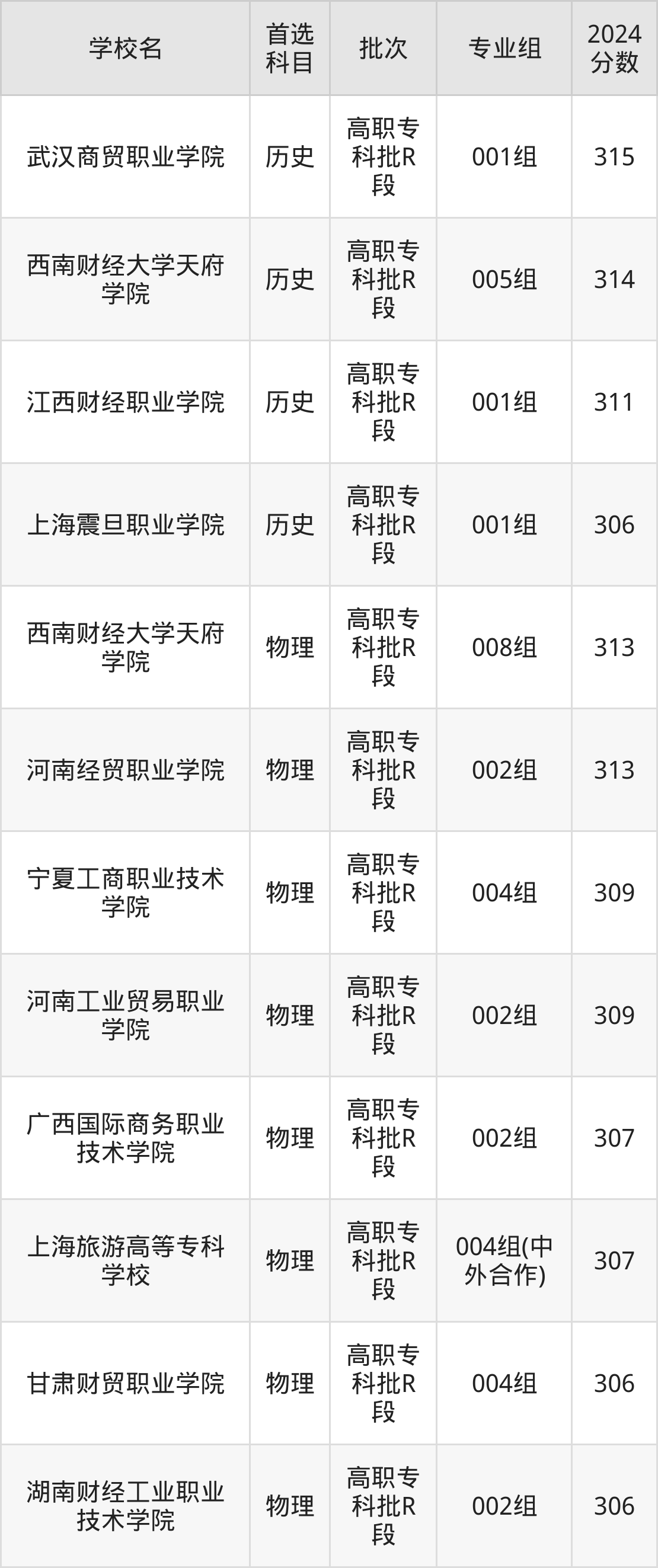 为给各位考生更加详细的参考,下文整理了2024年录取分数线在305分到315分之间的财经类大学名单汇总。