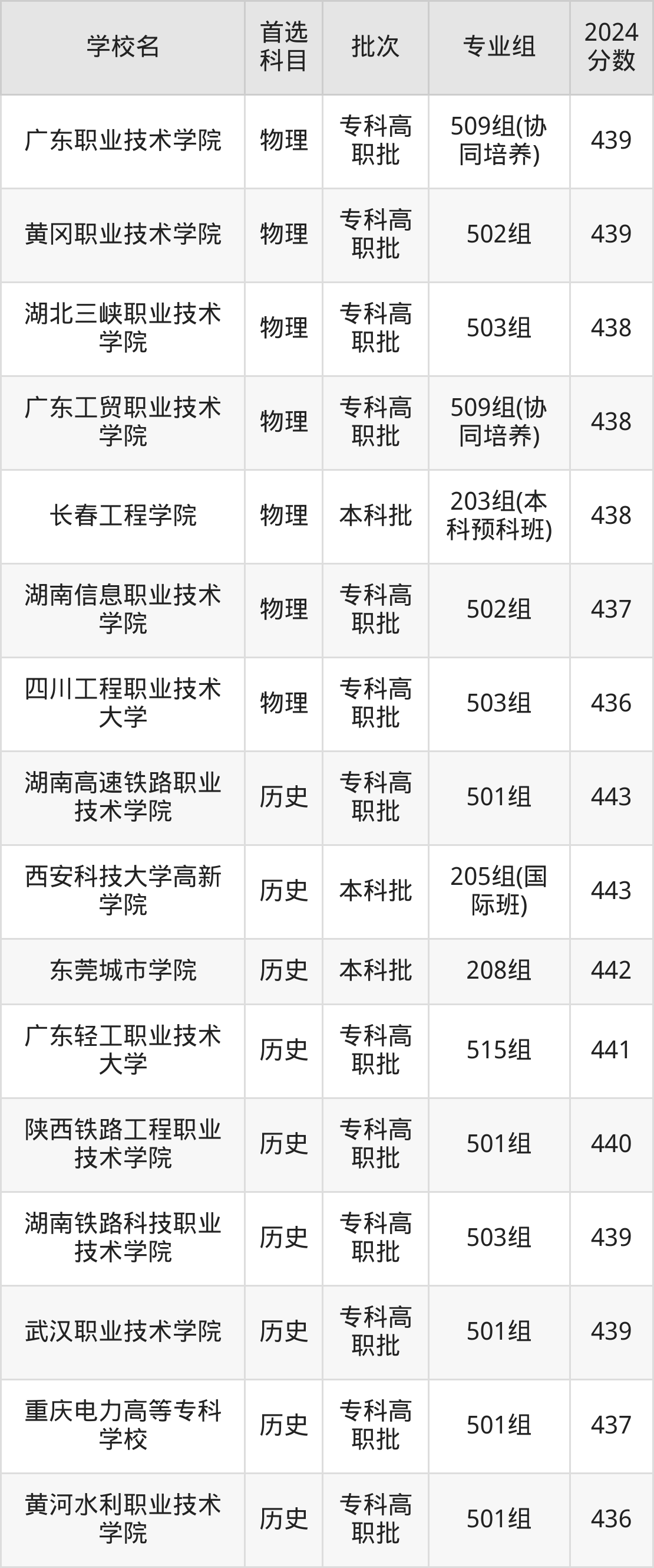 1、陕西铁路工程职业技术学院(2024年历史类501组440分)