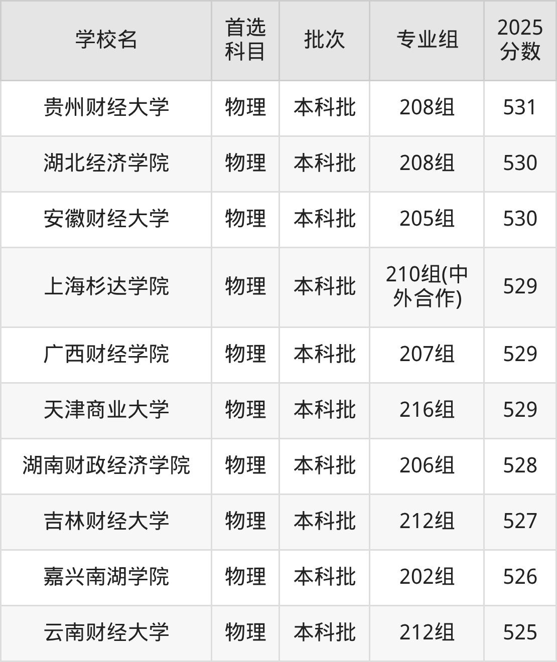 为给各位考生更加详细的参考,下文整理了2025年录取分数线在525分到535分之间的财经类大学名单汇总。