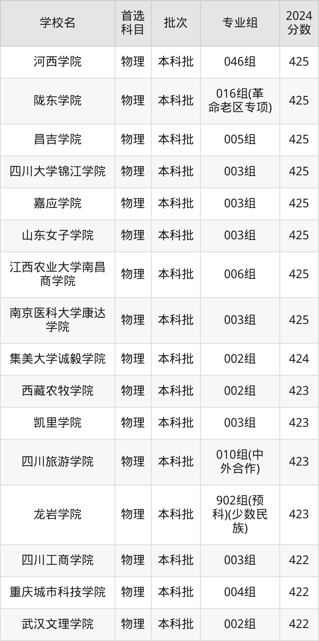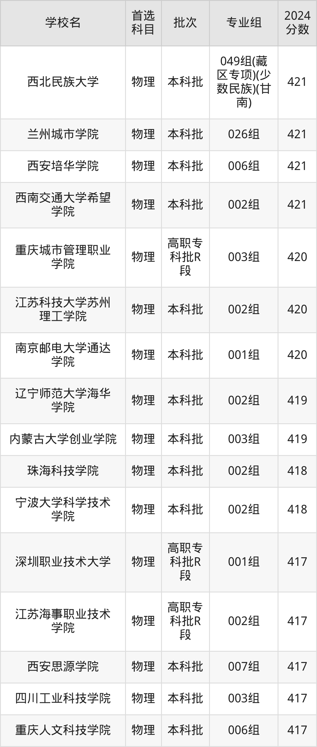1、重庆城市管理职业学院(2024年物理类003组420分)