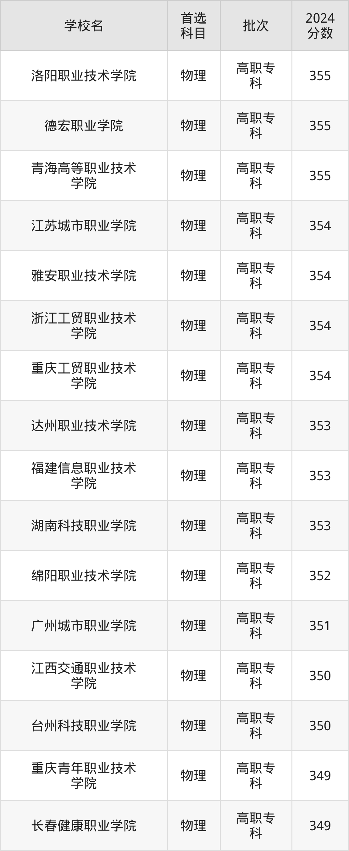 3、台州科技职业学院(2024年物理类350分)