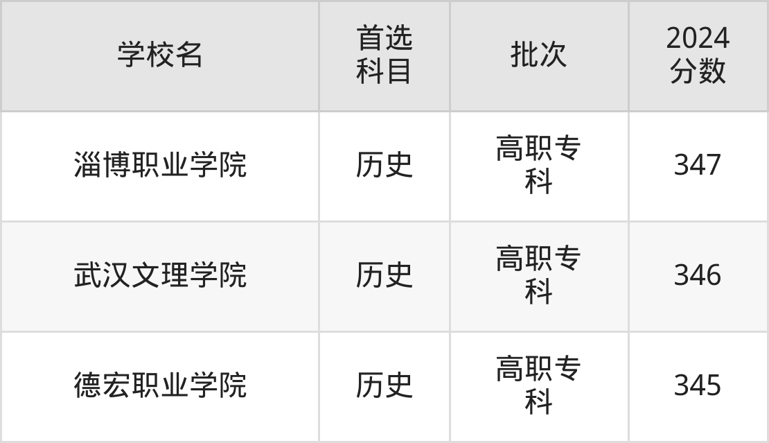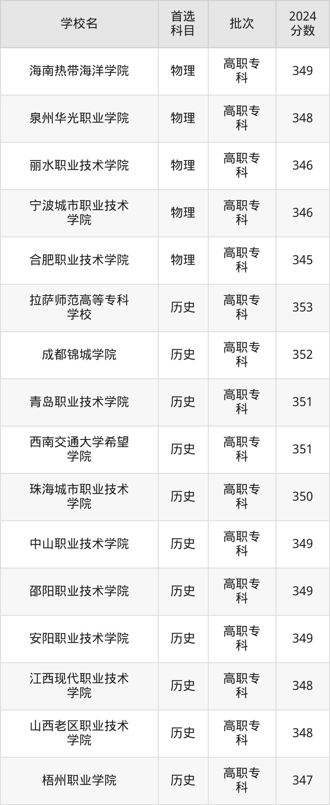 1、珠海城市职业技术学院(2024年历史类350分)
