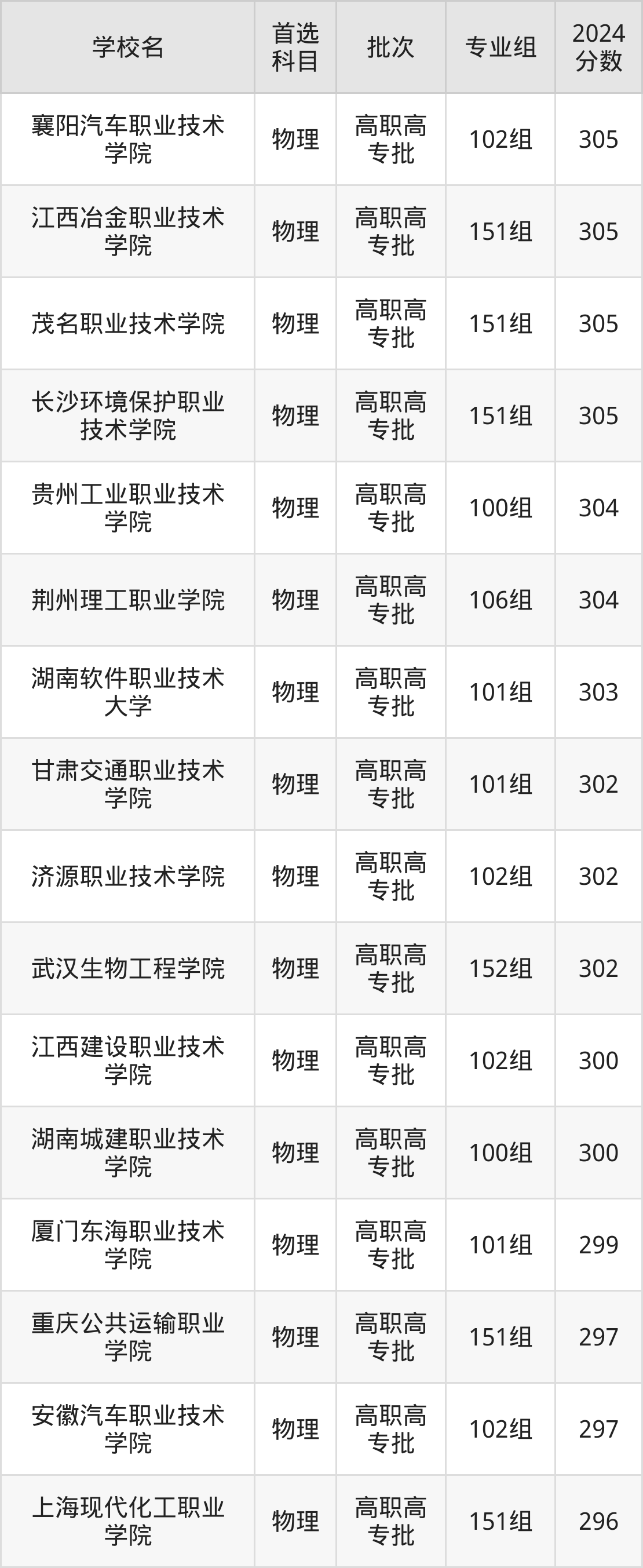 3、江西建设职业技术学院(2024年物理类102组300分)