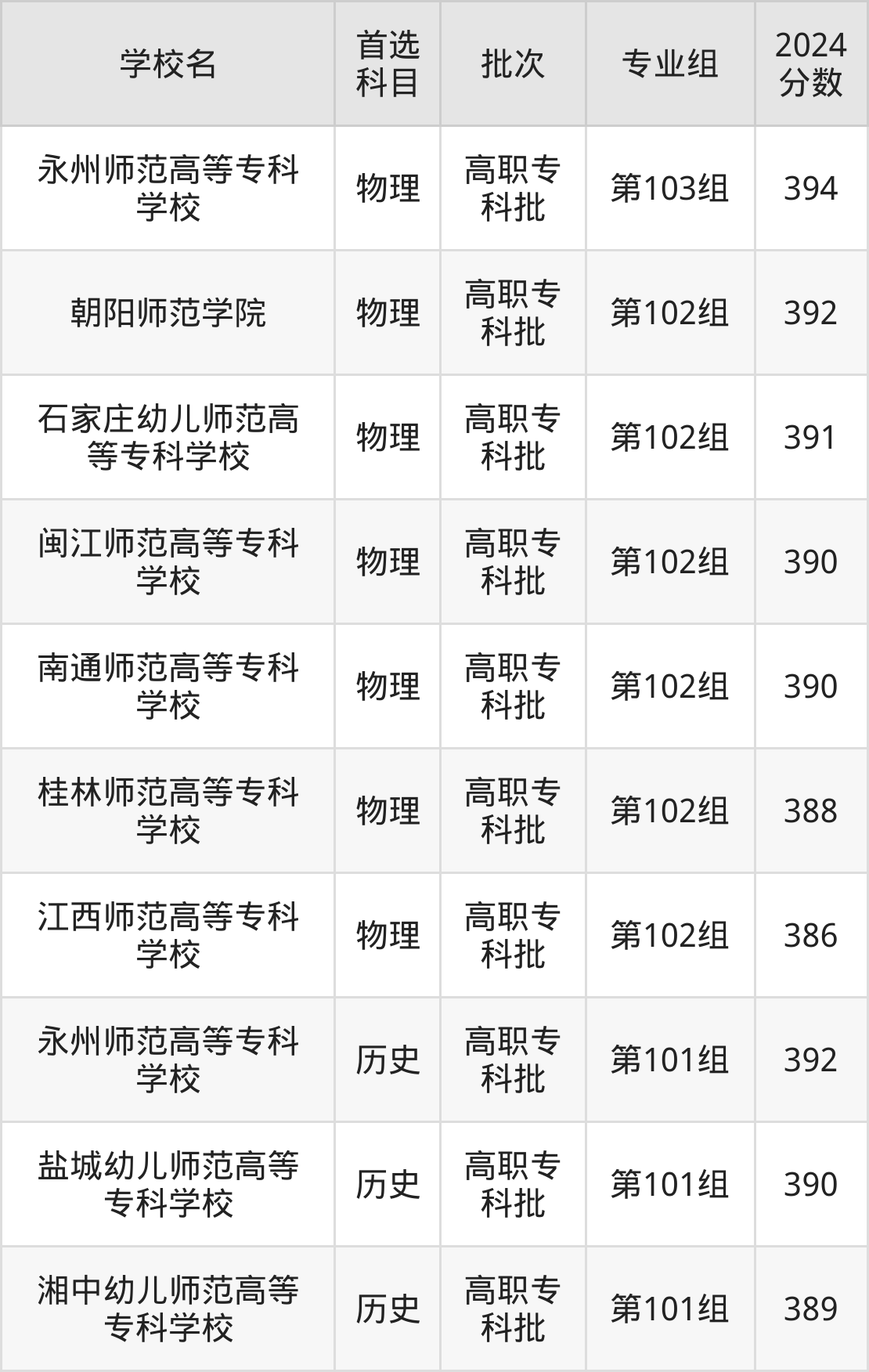 2、南通师范高等专科学校(2024年物理类第102组390分)