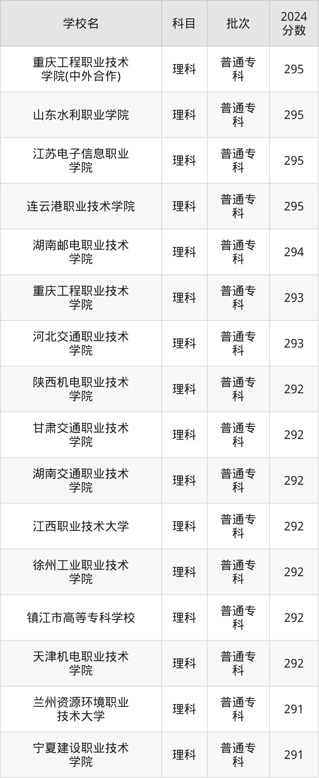 为给各位考生更加详细的参考,下文整理了2024年录取分数线在285分到295分之间的理工类大学名单汇总。