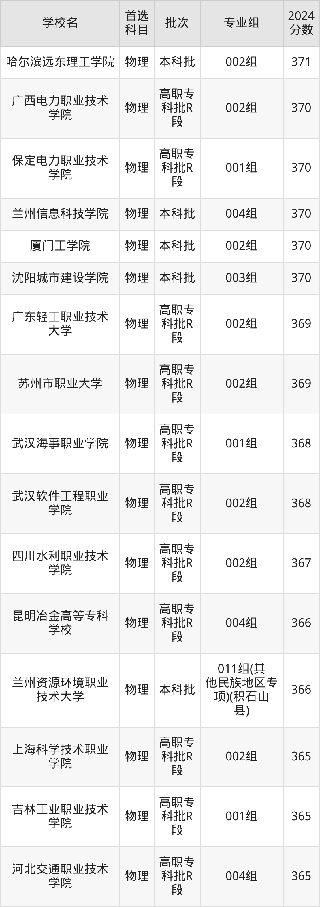 2、广西电力职业技术学院(2024年物理类002组370分)