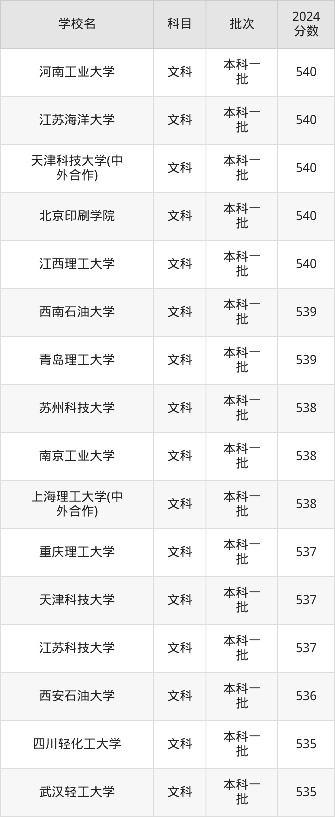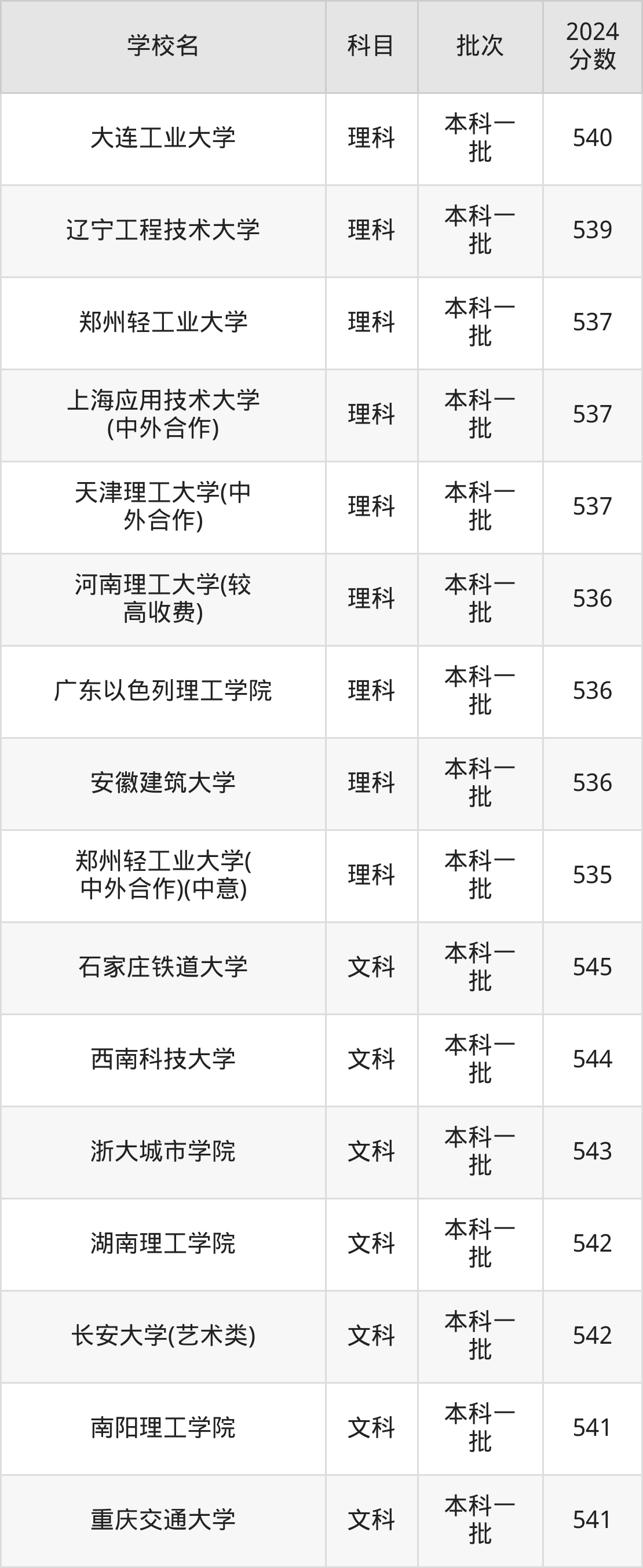 为给各位考生更加详细的参考,下文整理了2024年录取分数线在535分到545分之间的理工类大学名单汇总。