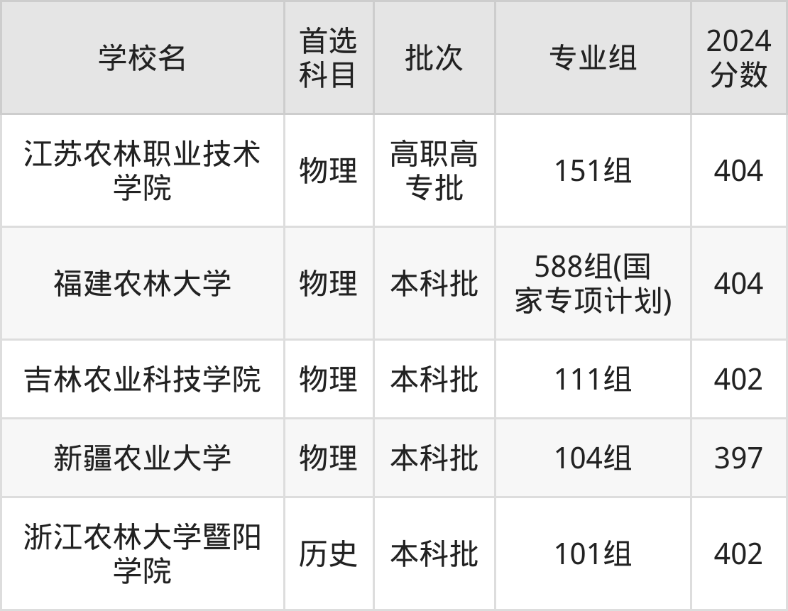 3、江苏农林职业技术学院(2024年物理类151组404分)