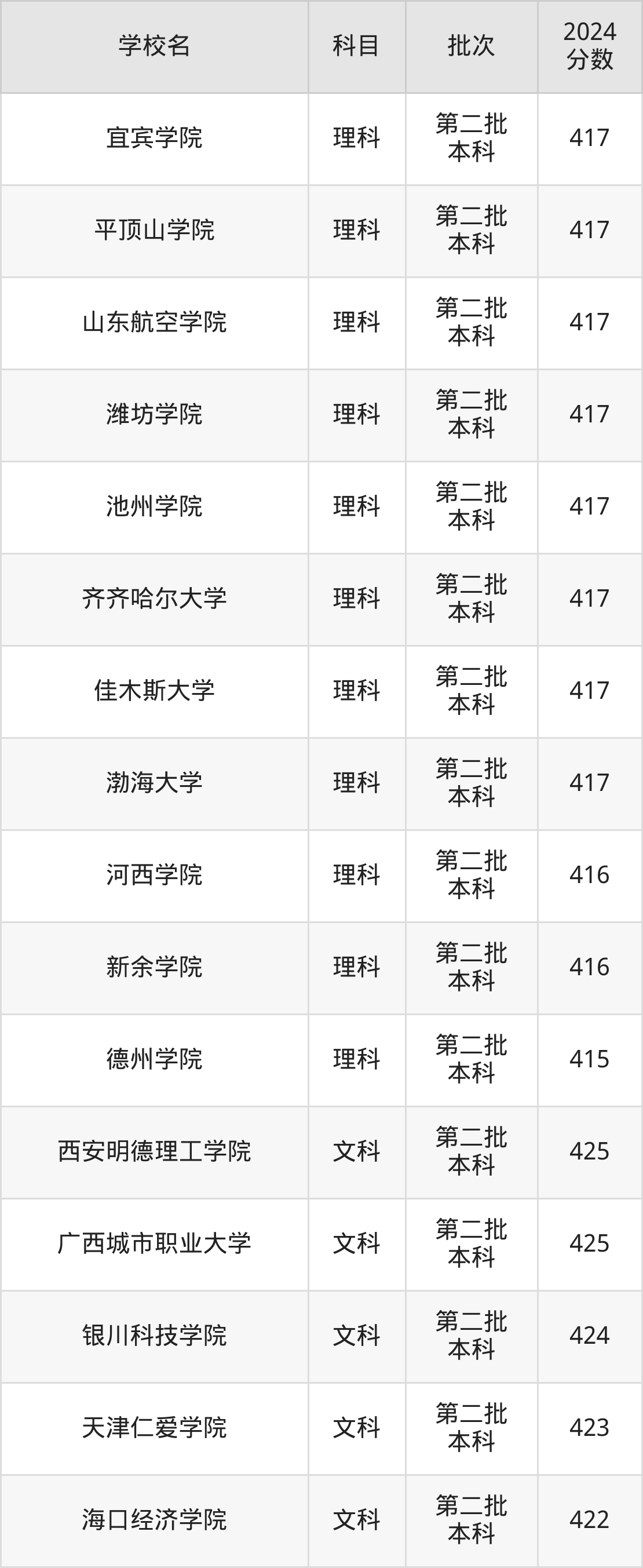 为给各位考生更加详细的参考,下文整理了2024年录取分数线在415分到425分之间的综合类大学名单汇总。