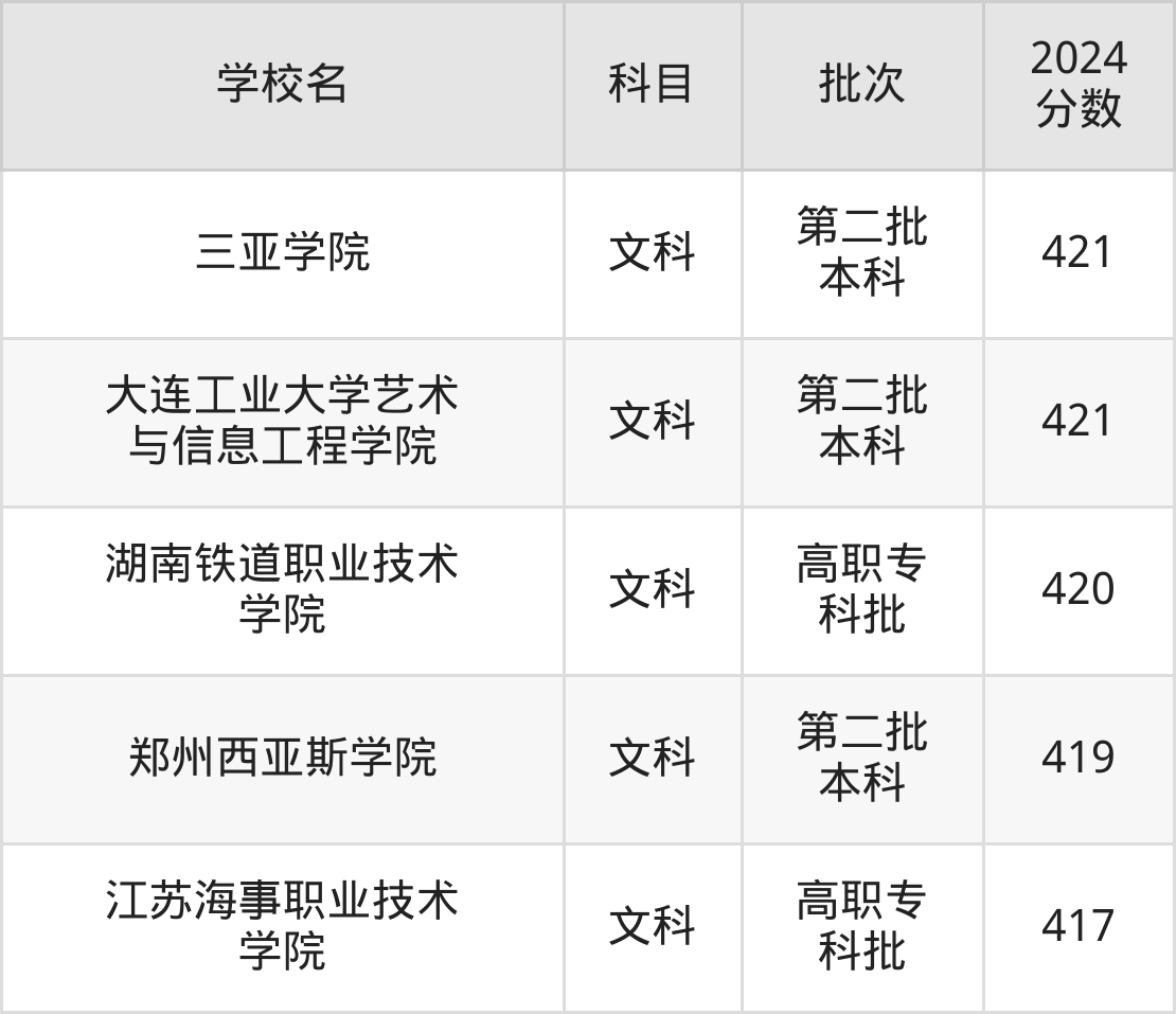 1、湖南铁道职业技术学院(2024年文科420分)