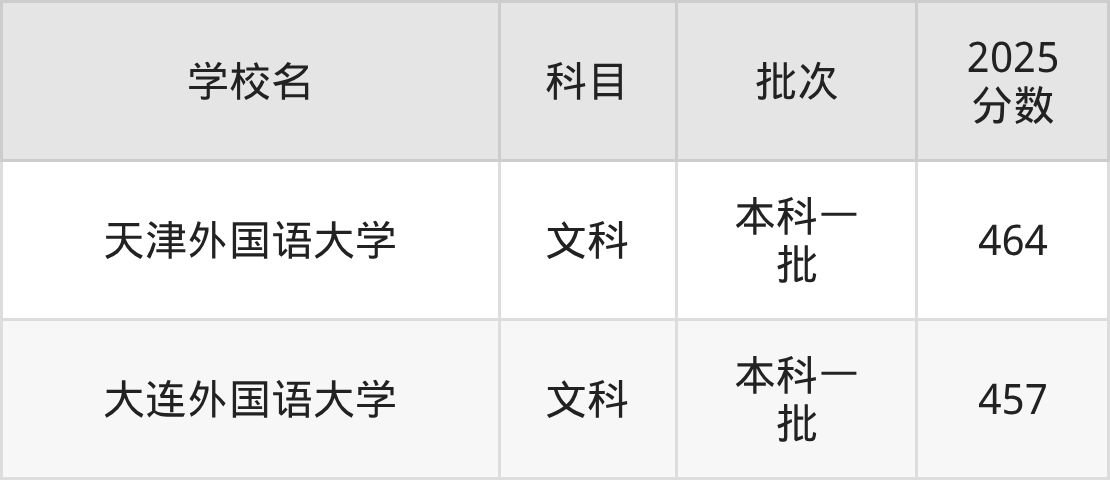 为给各位考生更加详细的参考,下文整理了2025年录取分数线在455分到465分之间的语言类大学名单汇总。