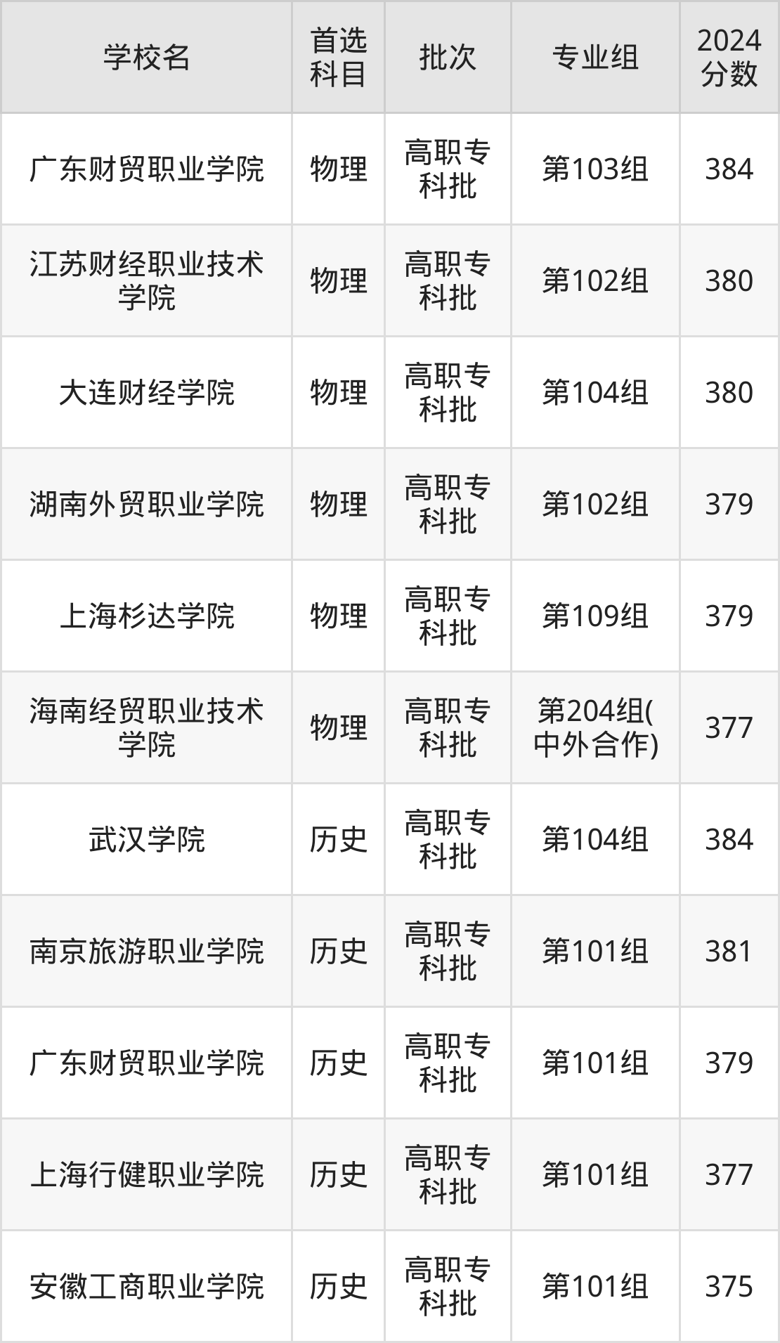 1、江苏财经职业技术学院(2024年物理类第102组380分)