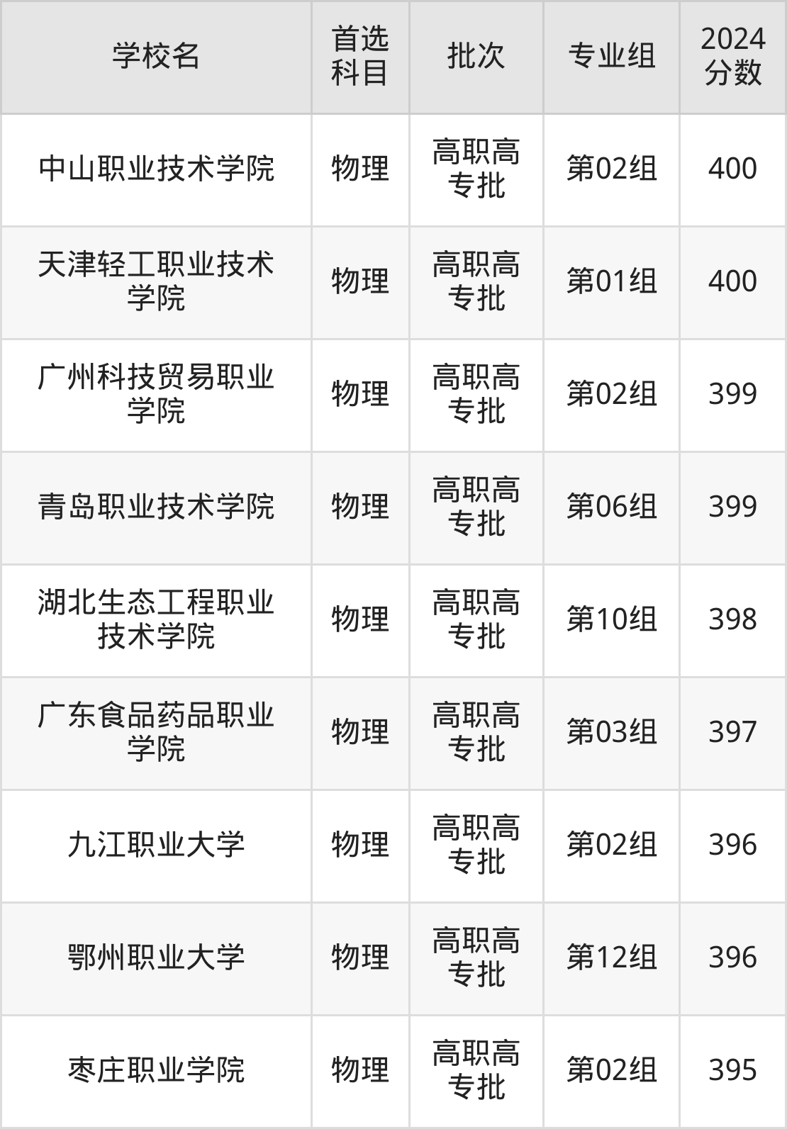 3、天津轻工职业技术学院(2024年物理类第01组400分)