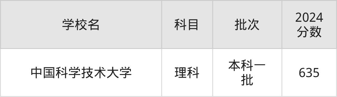 中国科学技术大学(2024年理科635分)