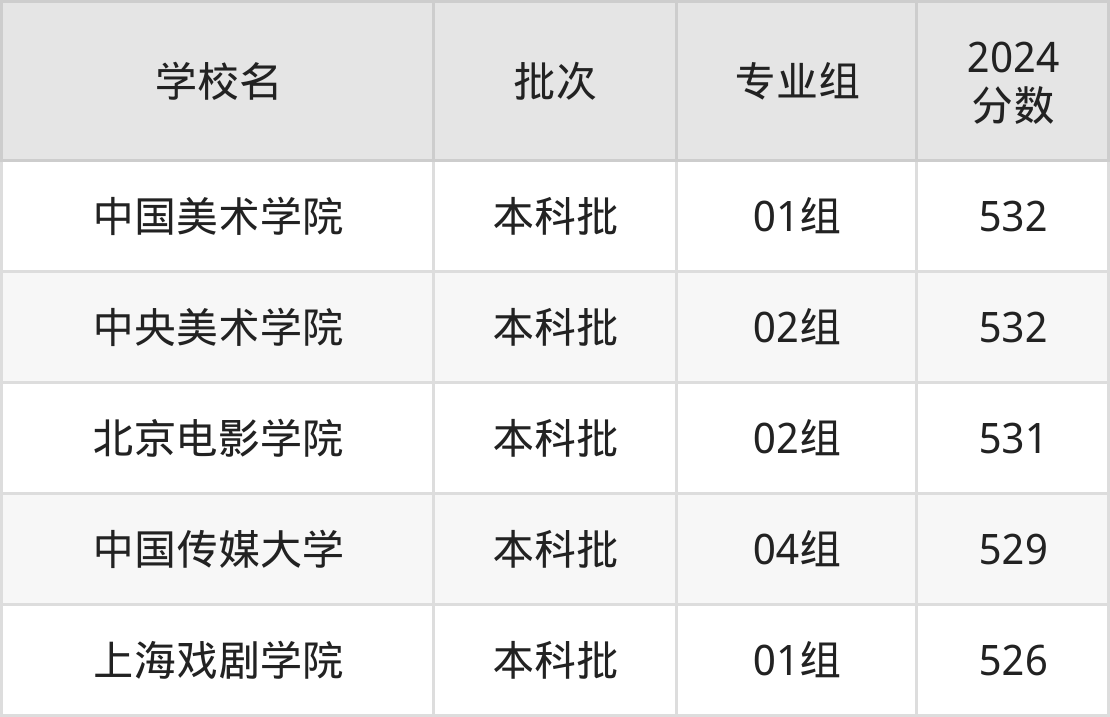 为给各位考生更加详细的参考,下文整理了2024年录取分数线在525分到535分之间的艺术类大学名单汇总。