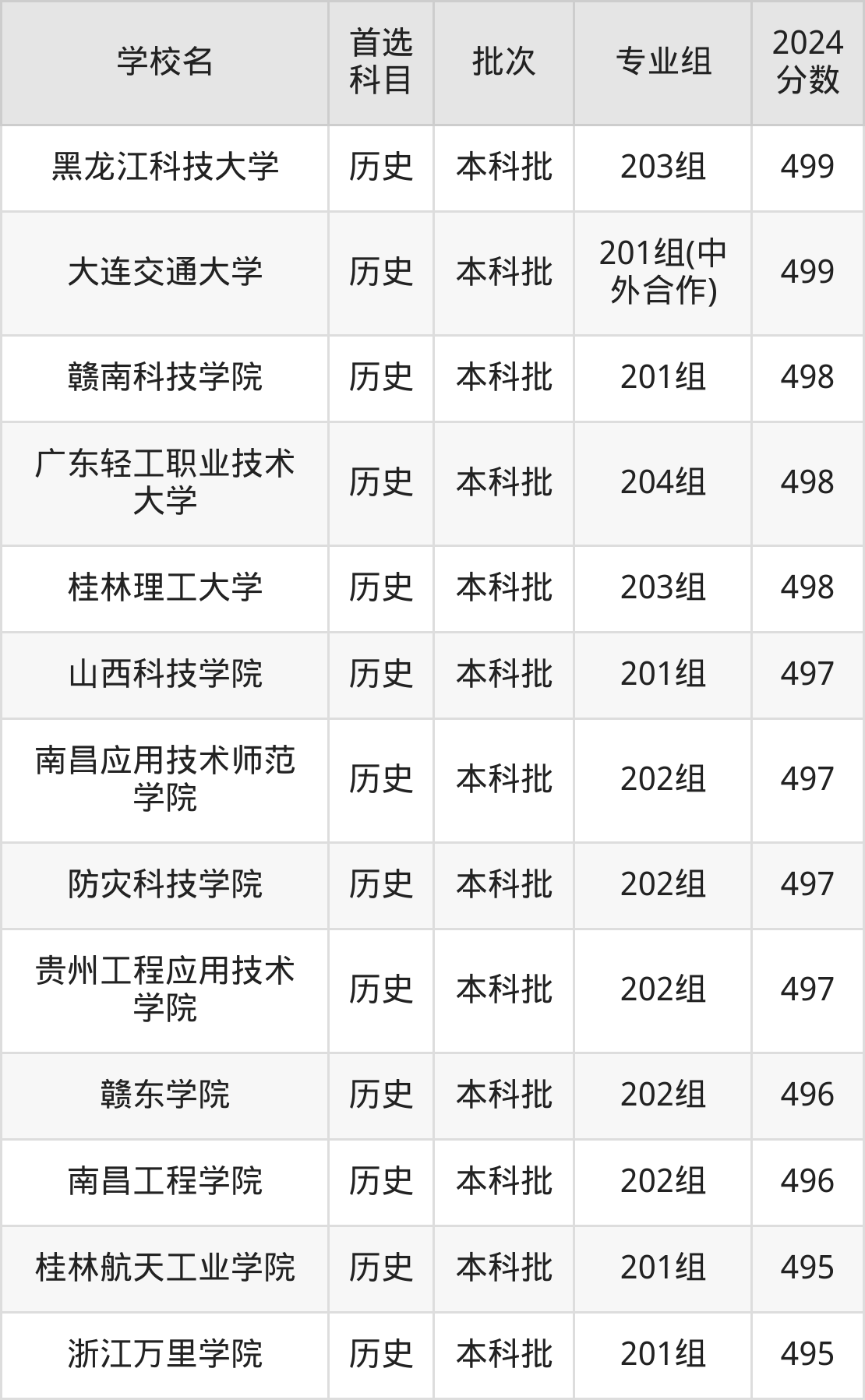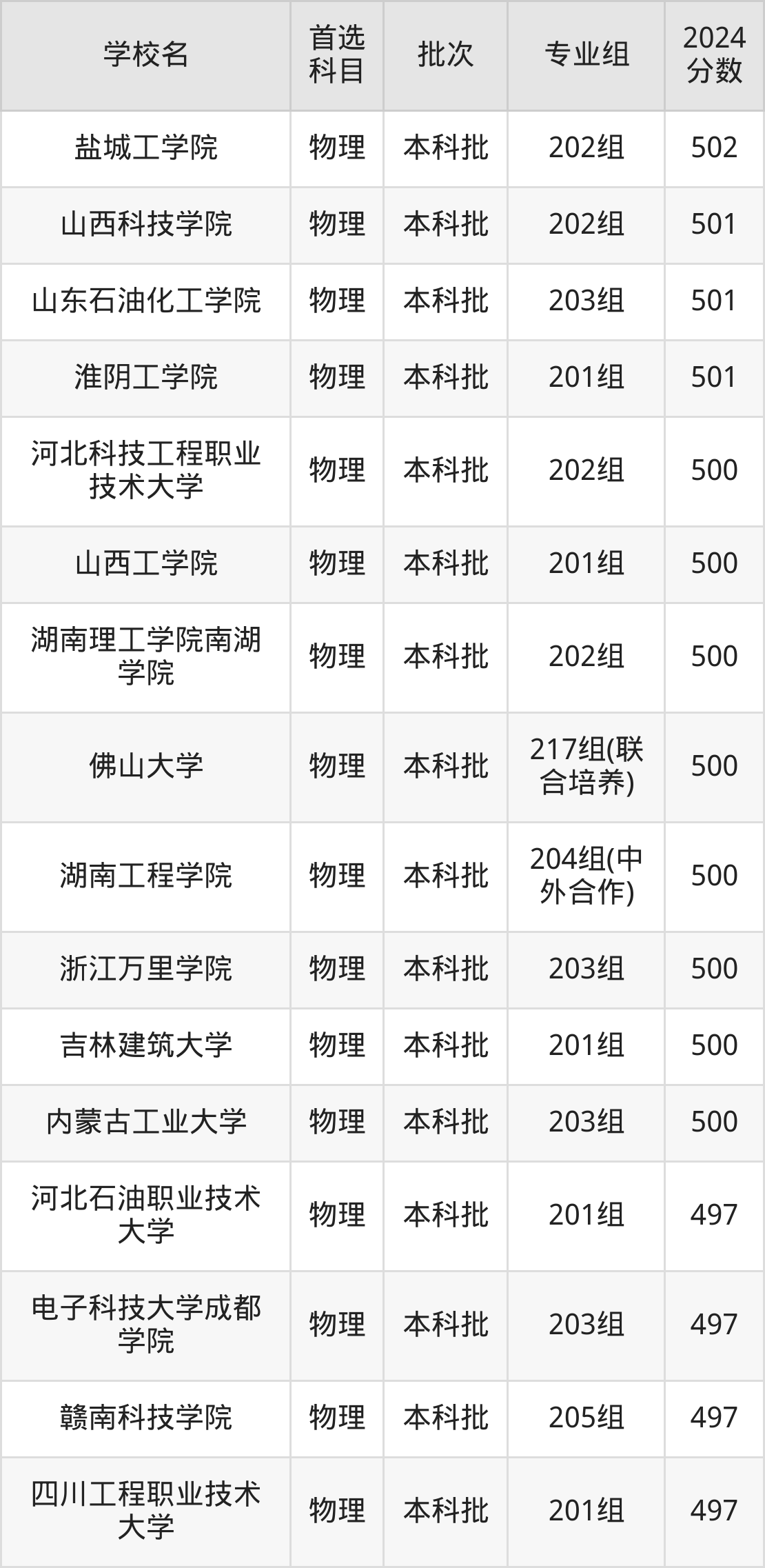 为给各位考生更加详细的参考,下文整理了2024年录取分数线在495分到505分之间的理工类大学名单汇总。