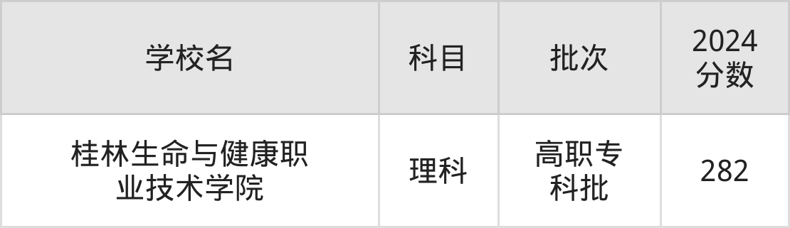 1、桂林生命与健康职业技术学院(2024年理科282分)