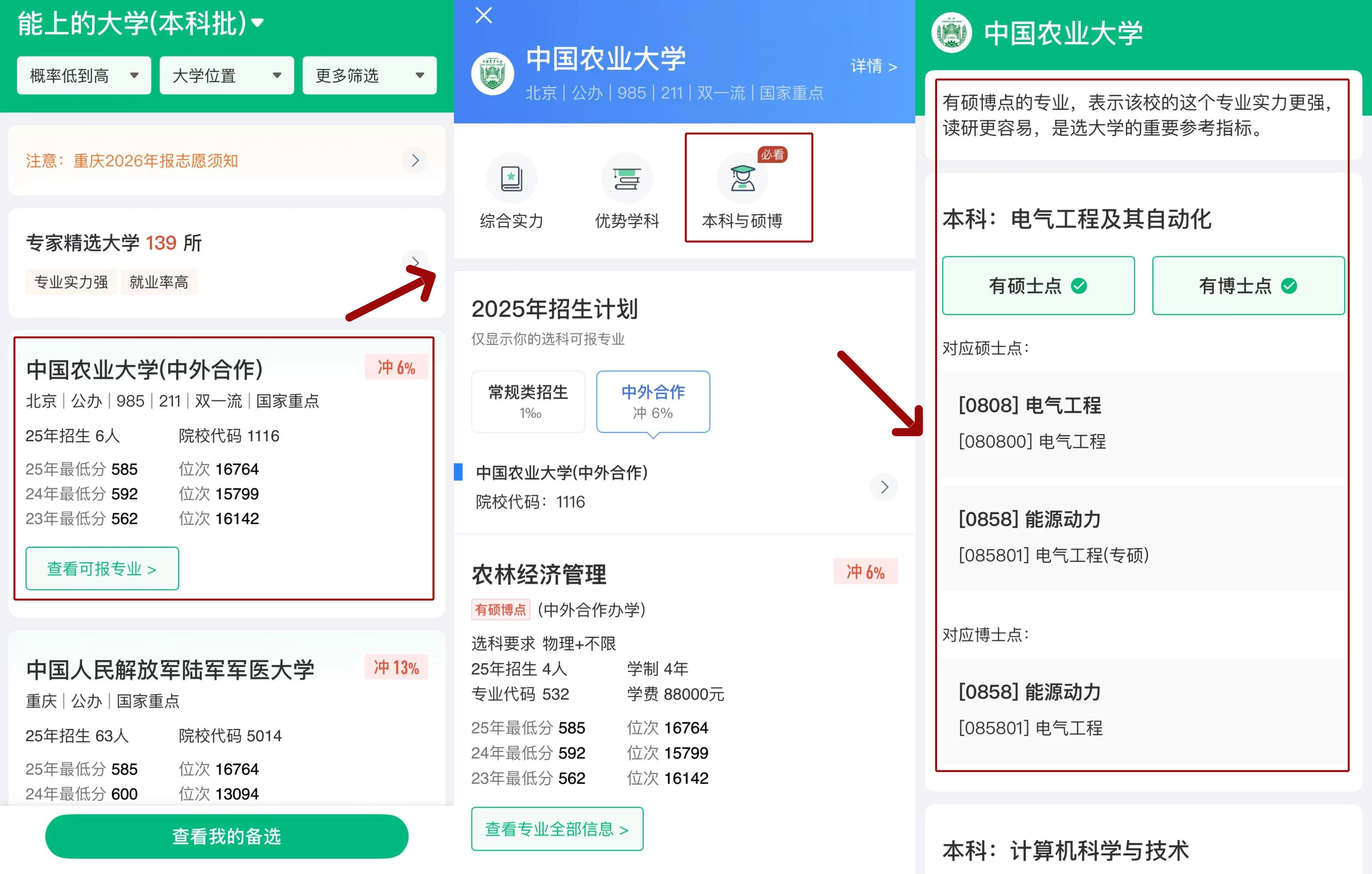 高校历年的录取数据,目前拥有多少个博士点、硕士点,最新全国排名是多少,优势专业是哪些,还有大家最关心的就业报告、招生章程,App里都能查到。
